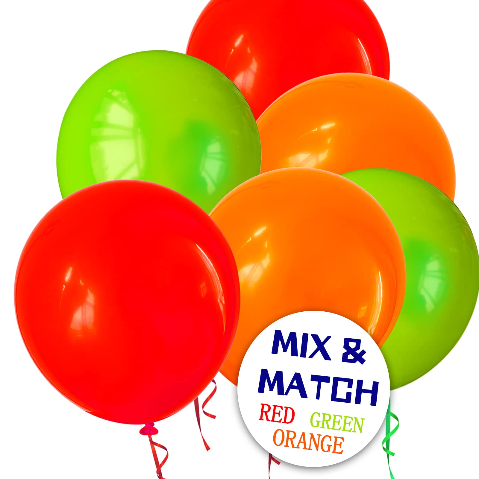 • Q: What are the dimensions of the orange balloons? A: The orange balloons in this set are 12 inches in size, making them perfect for various party decorations.
