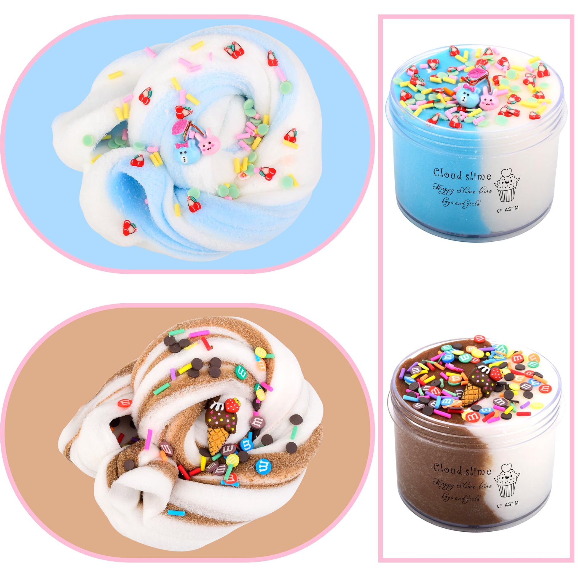 Product Description Made Of 100% Safe Materials, Giving Kids Hours Of Fun. A Colorful Butter Slime Set With Charm That Kids Love To Gift Back To School. Super Fun,Stretchable Slime, Kids Birthday Parties, Gifts And Supplies Super Soft And Smooth Slime That Can Be Made Into Many Different Shapes, It May Also Be A Useful Stress Relief Toy To Exercise Your Child'S Hands, Eyes And Brain Coordination And Develop Children'S Creativity And Imagination. Great For Kids To Unleash Their Creativity, Develop Their Sense Of Color And Have A Good Time When Playing Slime, Your Hands Won'T Stick To Anything And The Slime Won'T Fade. Slime Is Safe Because It Uses Safe, High-Grade Materials And Is Non-Toxic; You Can Use It With Confidence. This Mucus Can Be Stretched And Kneaded Vigorously And Is Very Elastic. Package Included: Two Color Cloud Slime With A Peachybbies,Roses, Grapes, Rainbows, Unicorns, Cakes, Ice Cream, Avocados, Strawberries, Bananas, Cute Cherries And Stithy Charm Attached Product Capacity: 60Ml X 12. Product Weight: A Single Weight Is About 70 Grams Package Includes Slime X 12 Features: ^Soft And Cool To The Touch ^Safe, Mild And Non-Toxic ^ Strong Plasticity ^Excellent Flexibility And Elasticity ^ Good Texture ^Easy Storage ^ Improve Your Child'S Creativity, Help Them Develop Motor Skills And Enhance Hand-Eye Coordination! Kind Tips: 1. Play On A Smooth, Dry Surface. Don'T Play On The Carpet. 2. Keep At Room Temperature. 3. Before You Start Pulling, Give The Slime A Few Rubs. This Will Make It More Cohesive. 4. Wash Your Hands After Playing. 5. Can Not Eat, It Is Recommended For Children Over 3 Years Old To Use And Play With Their Parents. 6. Put The Slime Back In The Container After Playing.