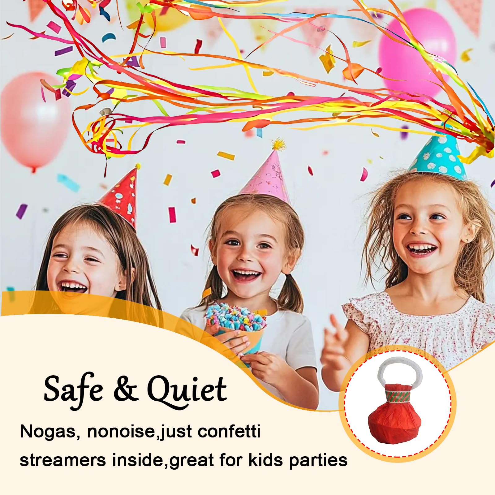 12 Pack Streamer Poppers, 6 Color Mix No Mess Confetti Poppers,Party Poppers No Mess Streamers Easy to Clean Handheld Streamer C