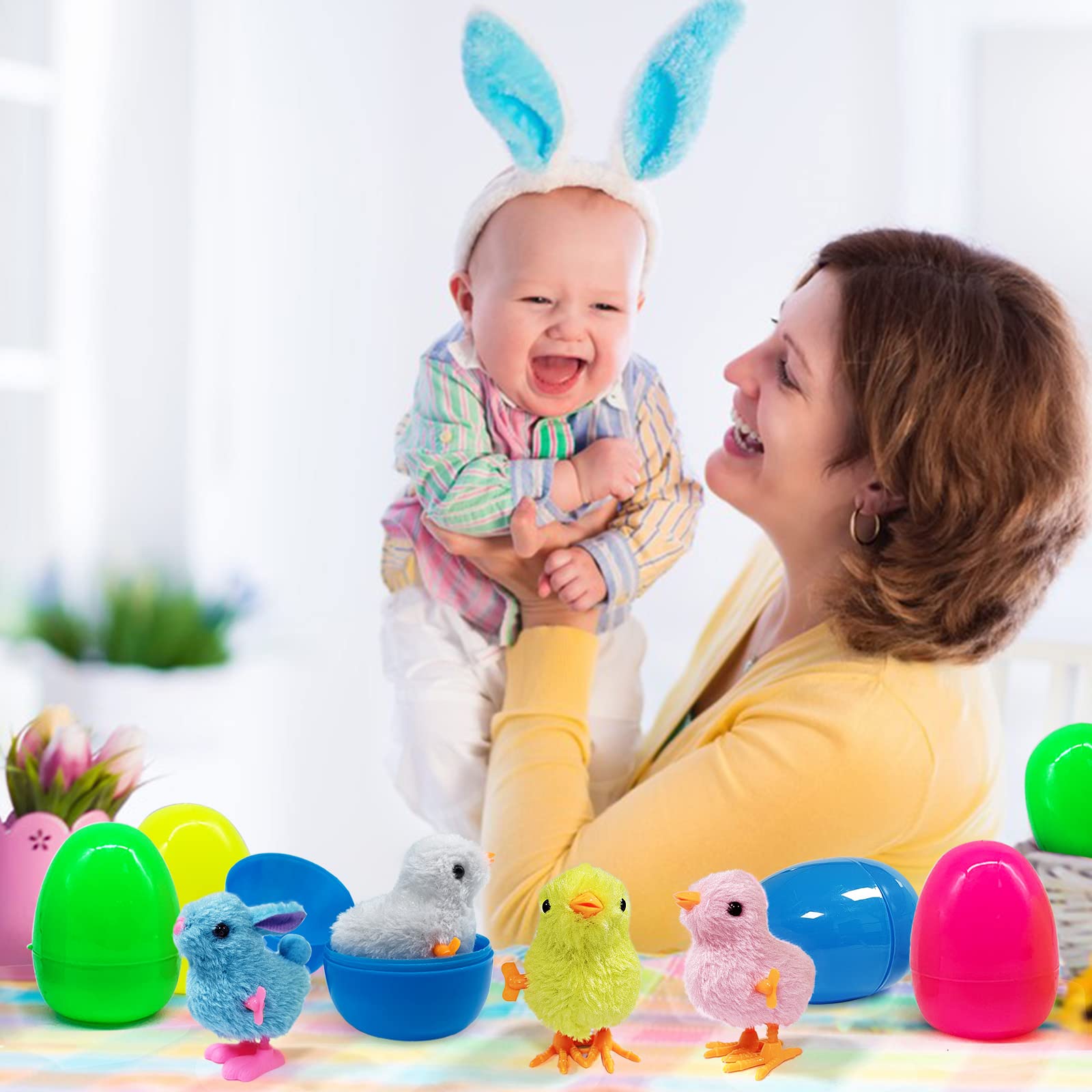 12 Pcs Easter Eggs Filled With Wind-Up Chicks And Bunnies 4' Large Surprise Eggs For Easter Eggs Hunt Easter Basket Stuffers Easter Gift For Kids