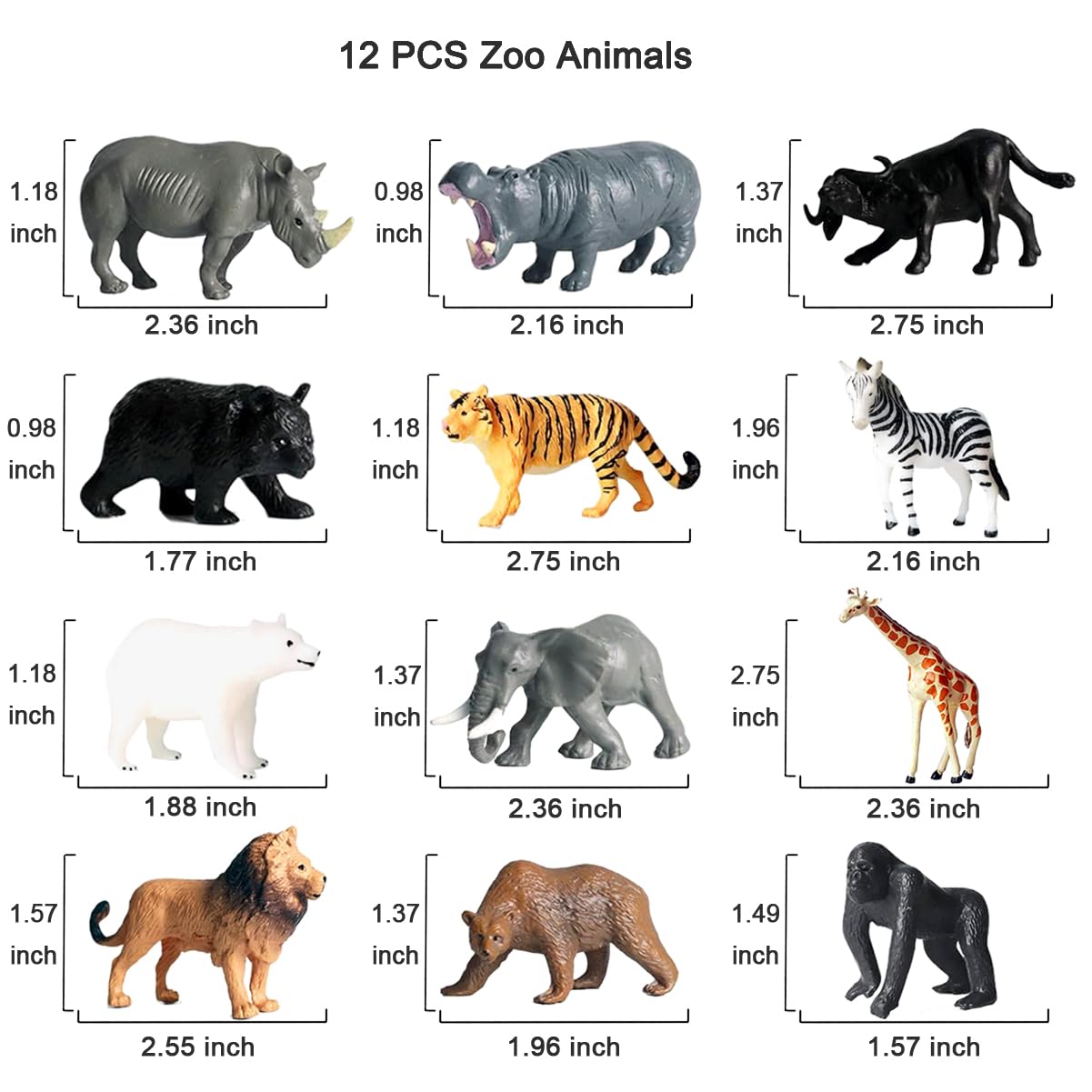 Safari Animals Toy Set: The Zoo Animal Figurines Playset Includes 12 Pcs 1.5-2.6 Inch Mini Wild Animals, You Will Use These Animals Element (Elephant, Tiger, Lion, Zebra, Hippo, Giraffe, Etc.) To Build A Fun Imaginary Zoo | Realistic Safari Animals Figurine: Unique Non-Repetitive Plastic Zoo Animals With Realistic Colors And Details, Natural Appearance And Unique Textures Make Them Look Lifelike, These Mini & Jumbo Wild Animals Toy Stand On Their Own Feet And Hooves, Active Poses Looks More Vibrant. Great Zoo Animal Toys For Kids Toddlers And Collectors | Child Friendly Safari Animal Figurines Playset: The Zoo Toy Set Is Made Of Durable Abs Plastic, Which Is Well-Made And Without Sharp Or Rough Edges, Comfortable To Touch And Will Not Harm Children, This Wild Animal Set Is A Perfect Toy For Childrens Over 3 Years Old | Safari Animal Toy Learning Set: These Zoo Animal Figurines Toy Set Inventing Stories Through Play, Will Improve Kid'S Hands On Ability, Stimulate Their Imagination And Creativity To Build A Beautiful Zoo. As Educational Toy, It Not Only Can Provides Information And Make Kids Recognize Different Animals, But Also Keep Your Children Away From Electronics And Protect Their Eyesight | Ideal Gift For Boys & Girls: Great Plastic Zoo Animal Set For Kids Ages 3 4 5 6 7 Year Old And Up, Perfect Gift Choice For Birthdays, Christmas, Halloween, Thanksgiving, New Year, Zoo Theme, Decoration Of Cupcake Toppers And More Holidays. Parents Can Build The Zoo With Your Children, Enhance Parent-Child Interaction, Creates Endless Happy Moments