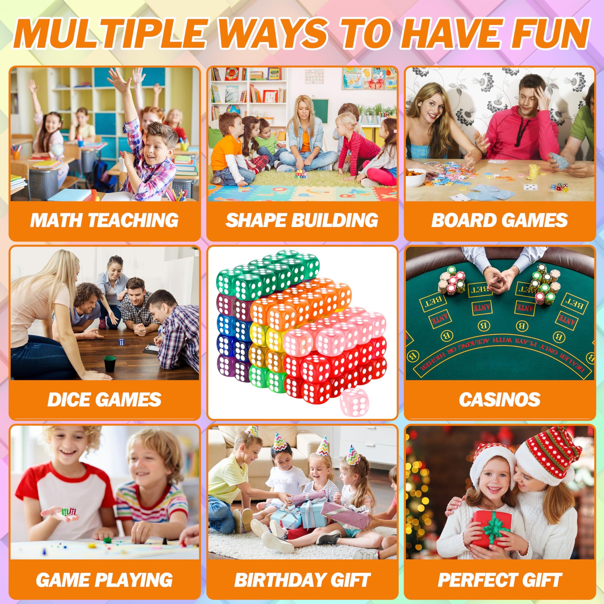 View compare120 Pcs Colored Dice Bulk Set 14 Mm Polyhedral Dice 6 Sided Standard Dices With Storage Bag For Table Board Games Classroom Math