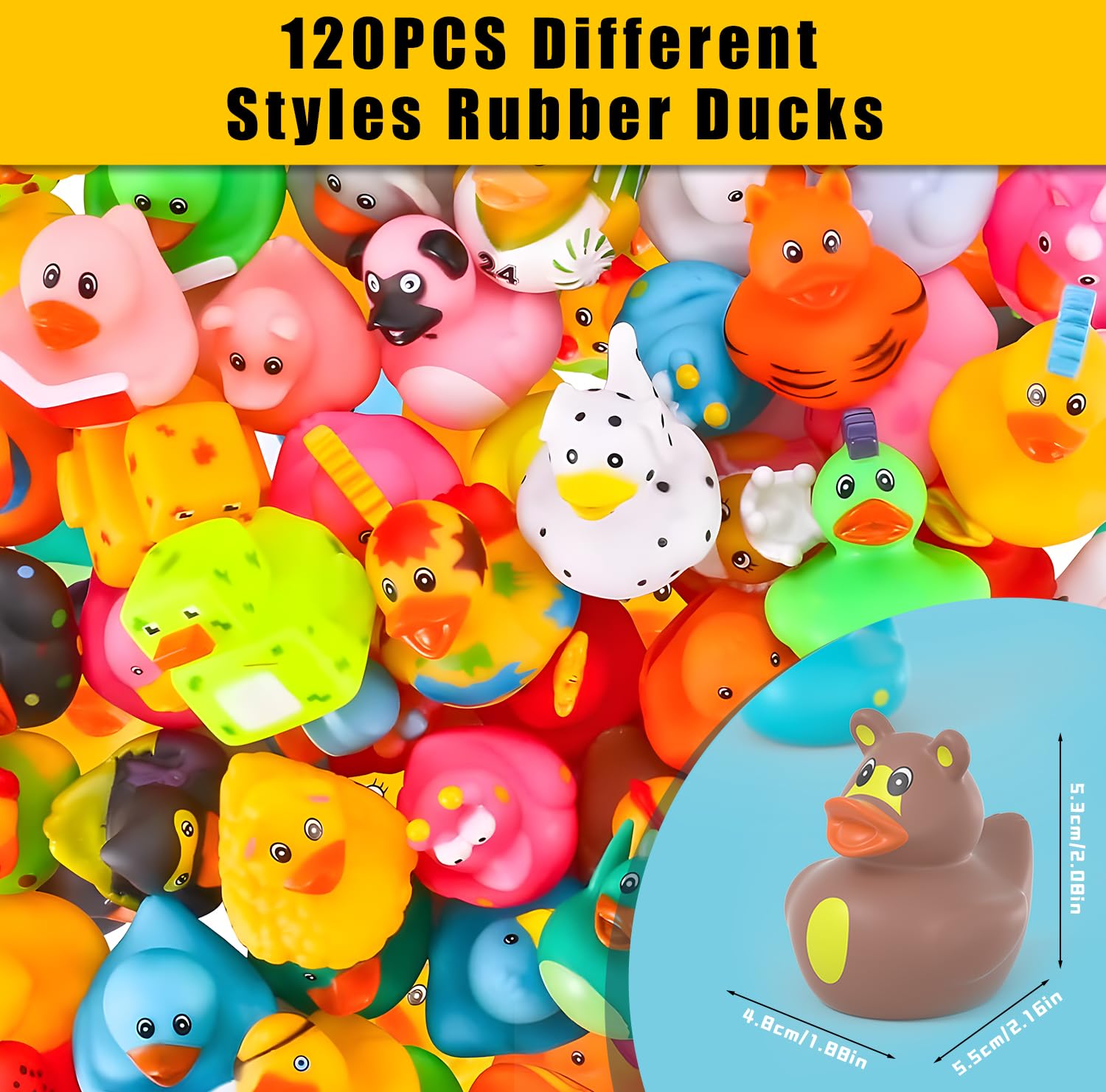 - Q: How many rubber ducks come in a pack? A: Each pack contains 120 mini rubber ducks, featuring a variety of colors and characters, perfect for sharing with friends and family.