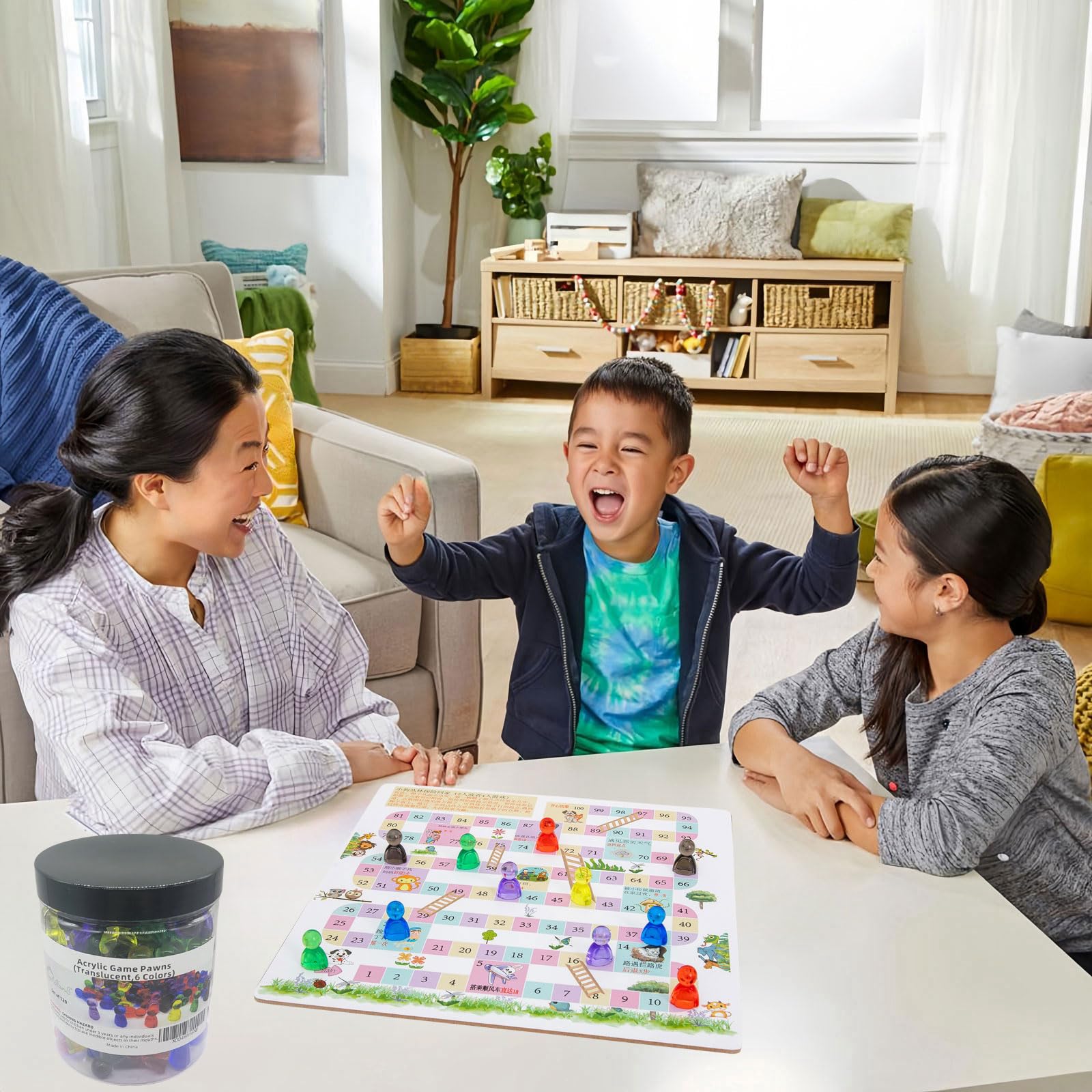 - Q: How many colors are included in the set of game pawns? A: The set includes 6 different colors of translucent pawns, allowing players to easily distinguish between different characters or teams.