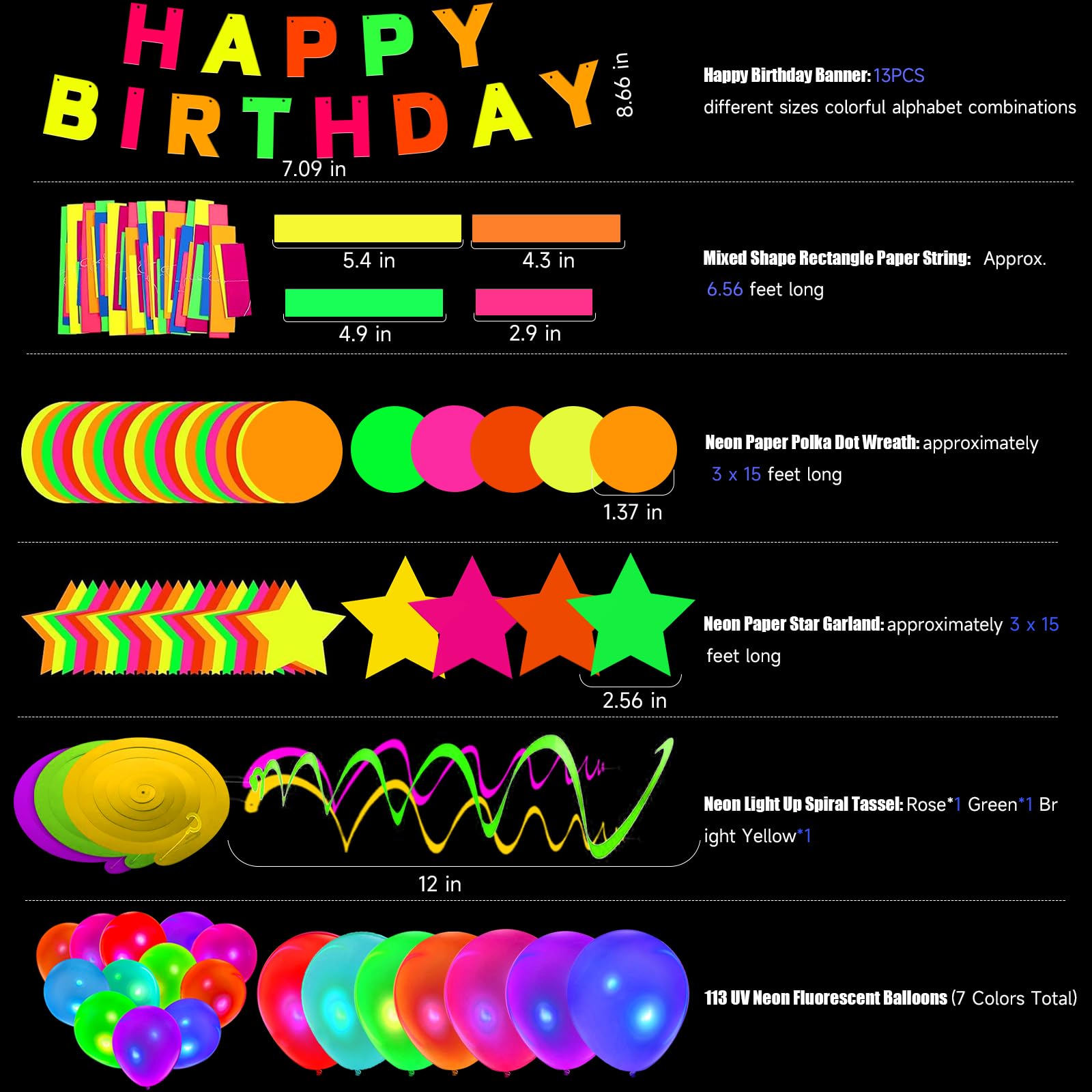 120 Pieces Neon Glow In The Dark Birthday Party Decorations Supplies Glow Party Neon Balloon Garland Kit Neon Glow Party Supplie