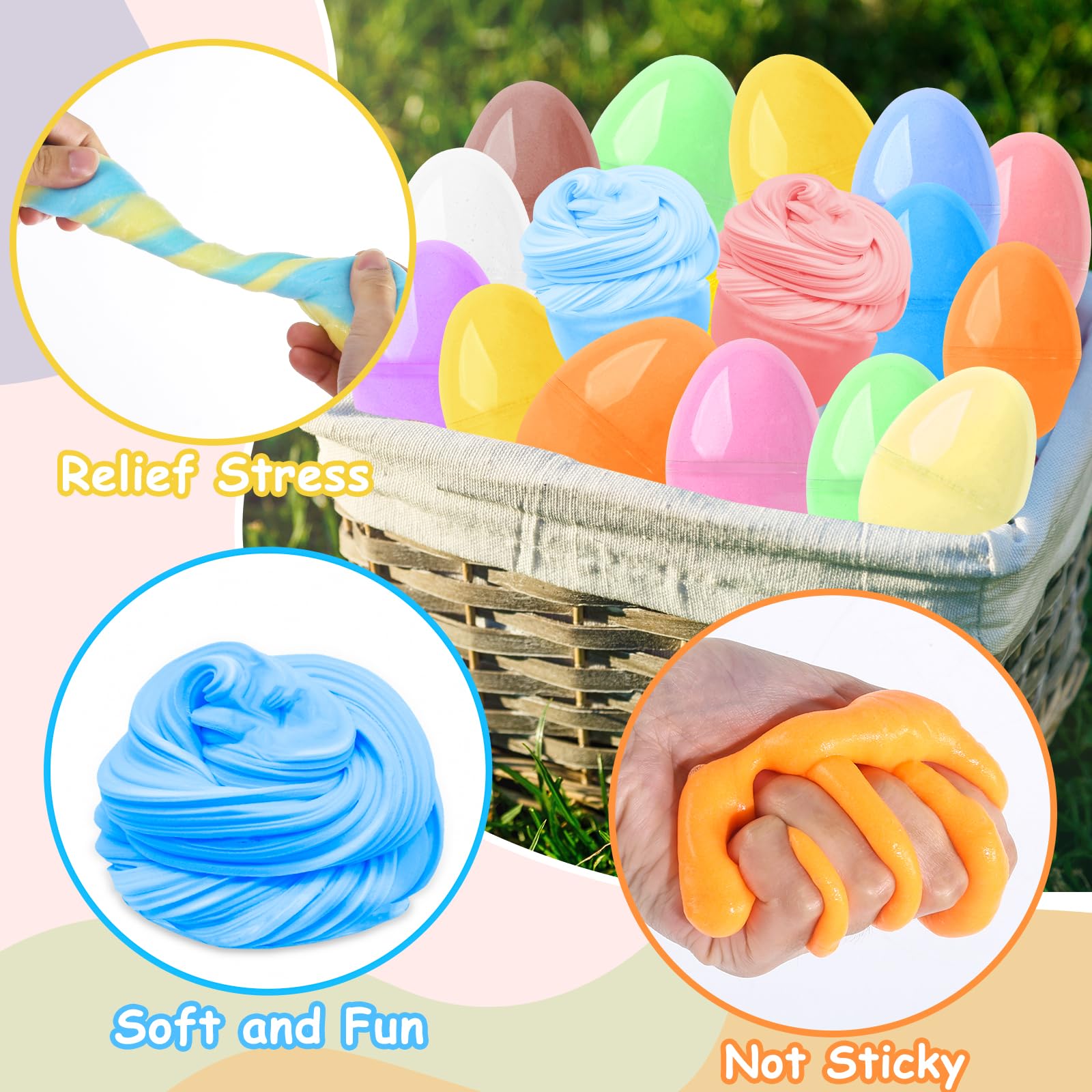 12Pack Prefilled Easter Eggs with Butter Slime Bulk for Kids, Easter Basket Stuffers, Fidget Relief Non-Sticky Eggs for Kids Hun