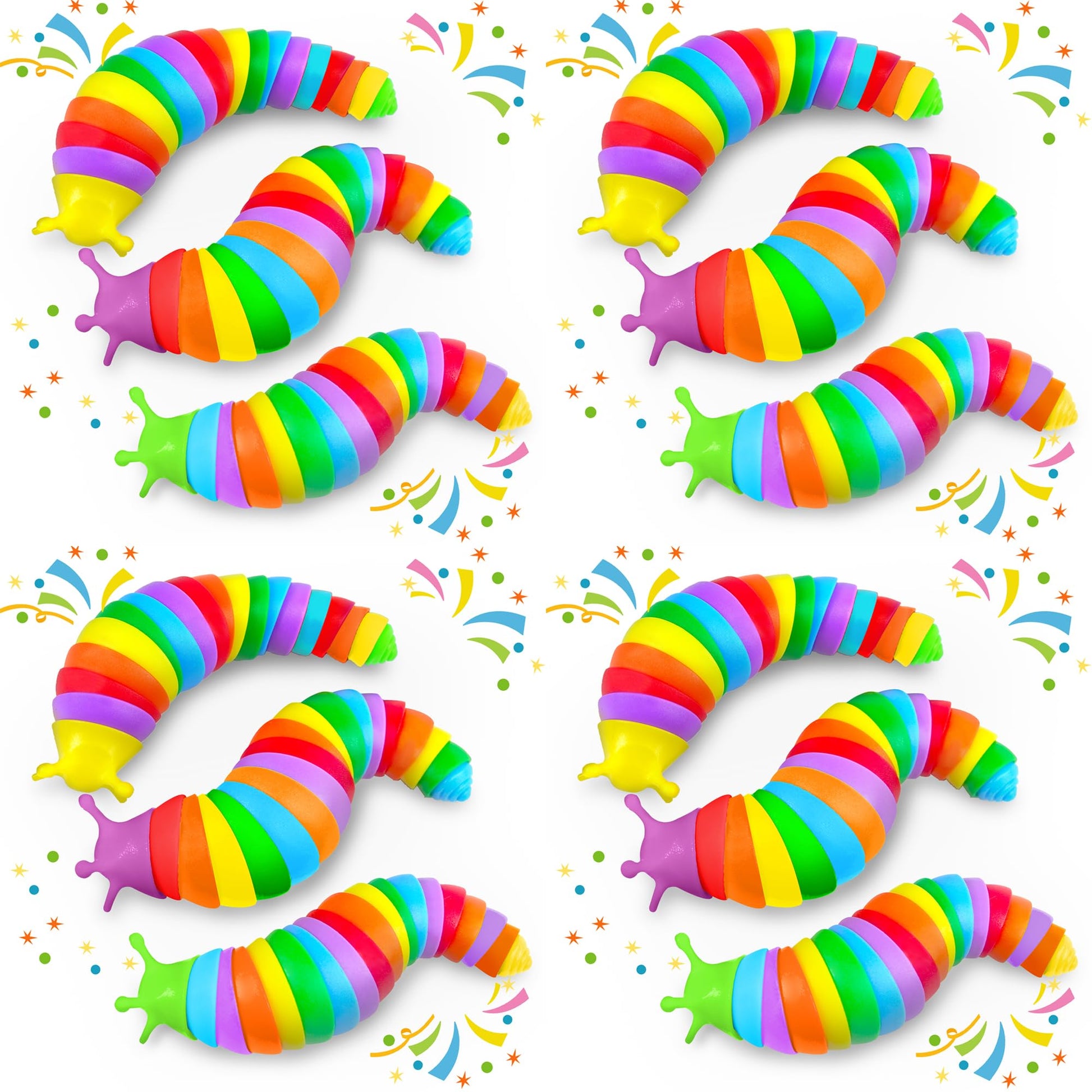 12Pcs Baby Sensory Fidget Slug Toys Pack, Asmr Travel Airplane Activities Road Trip Car Toy For Toddler Kids Figette Worm For Ad
