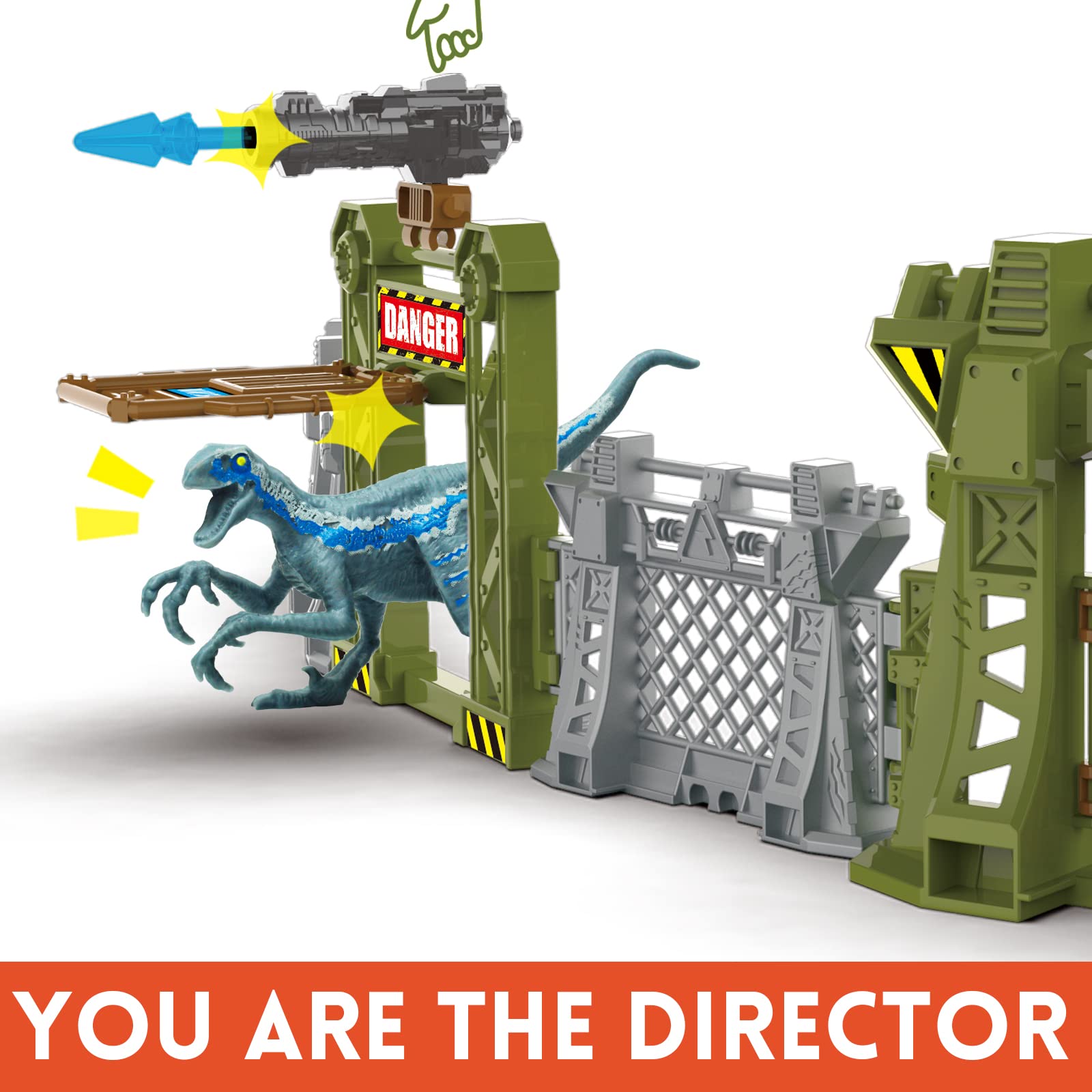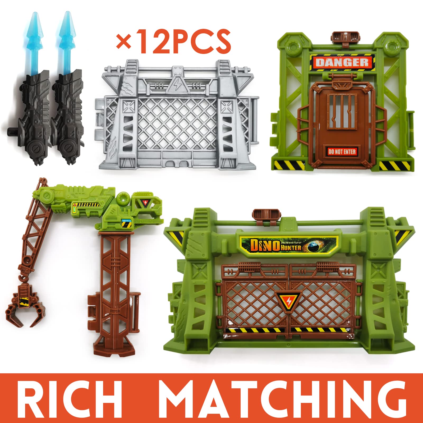 12Pcs Mini Dinosaurs Figurines Toys With Dinosaur Trainning Fence Play Toys Set For Kids 3-5 5-7, Capture N Escape Jurassic Dino World Playset, Including 12 Jurassic Dinosaur Fences Gates 2 Blasters