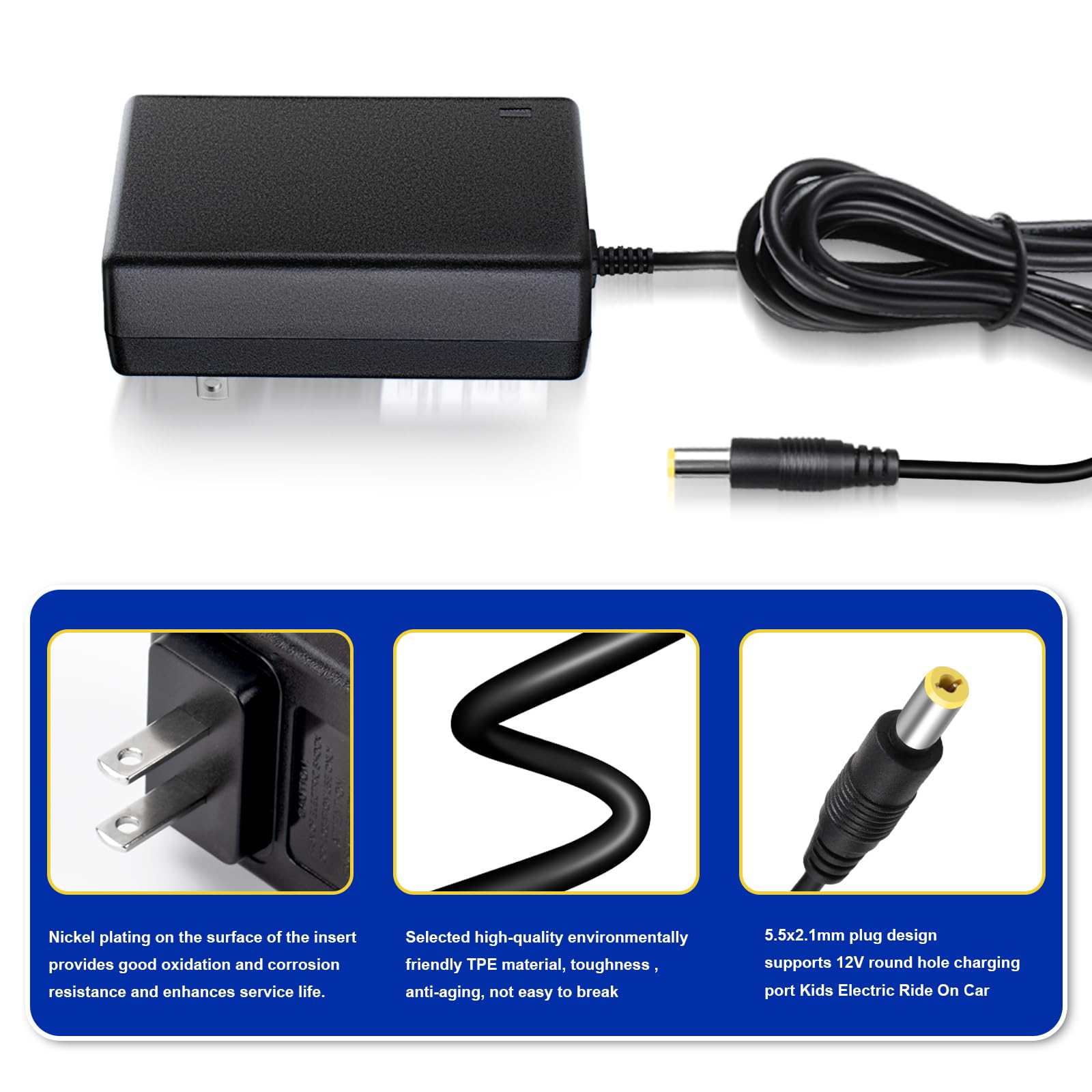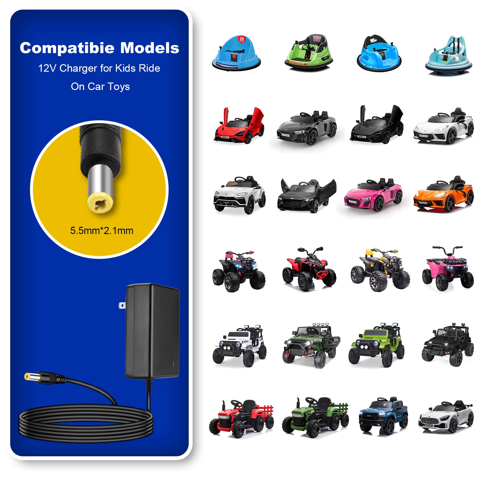 12V Charger for Kids Ride On Toys 12V Charger for Best Choice Products TOBBI Kidzone Bumper car Jeep Electric car Powered Wheels