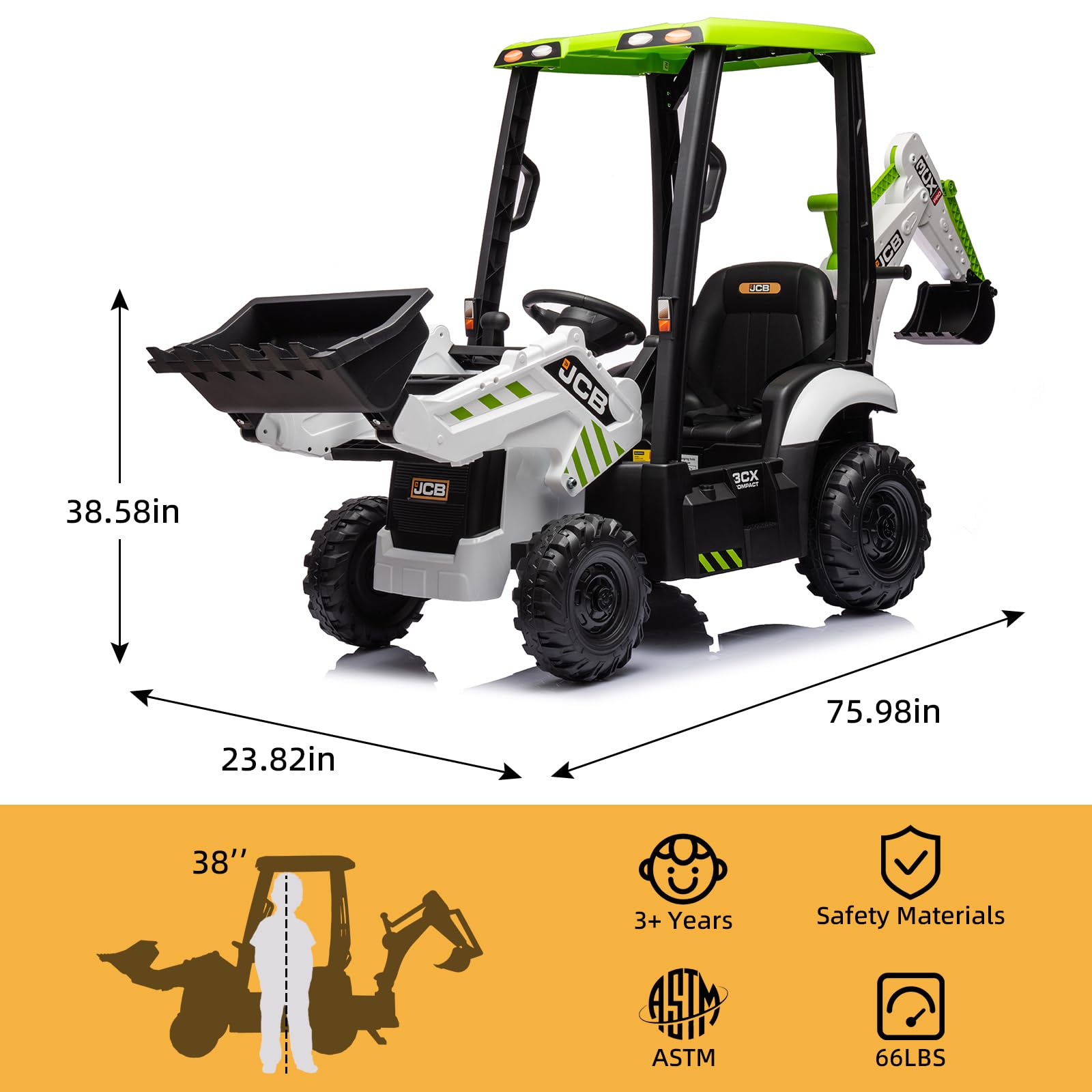 - Q: What age group is the 12V JCB Ride On Excavator suitable for? A: The 12V JCB Ride On Excavator is designed for kids aged 3 to 8 years old, making it a perfect choice for young children who enjoy imaginative play.