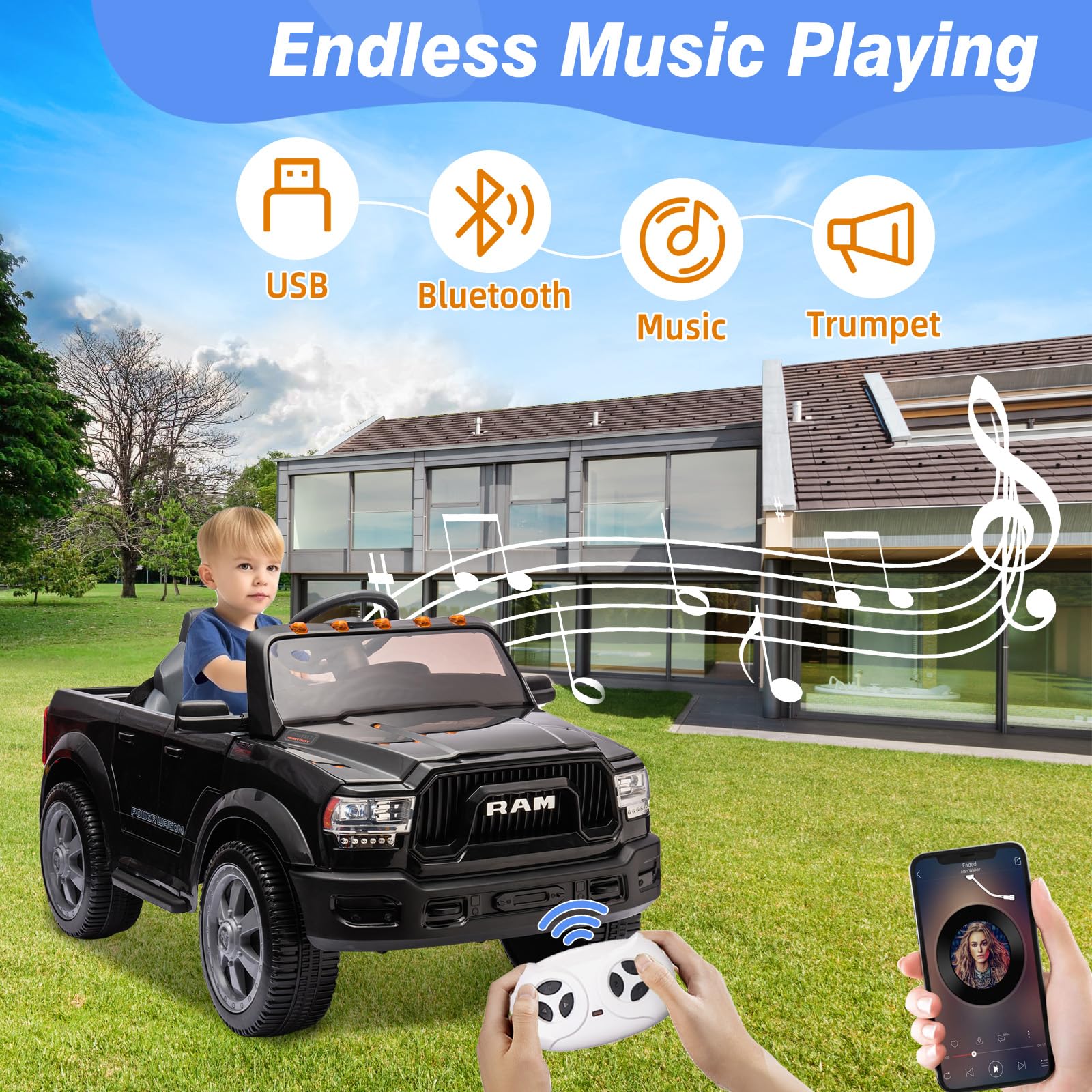 12V Ride-On Electric Truck, Licensed Dodge Ram 2500, With Remote Control, Led Light/Music/Mp3, Back Storage & Cup Holder, Kids E