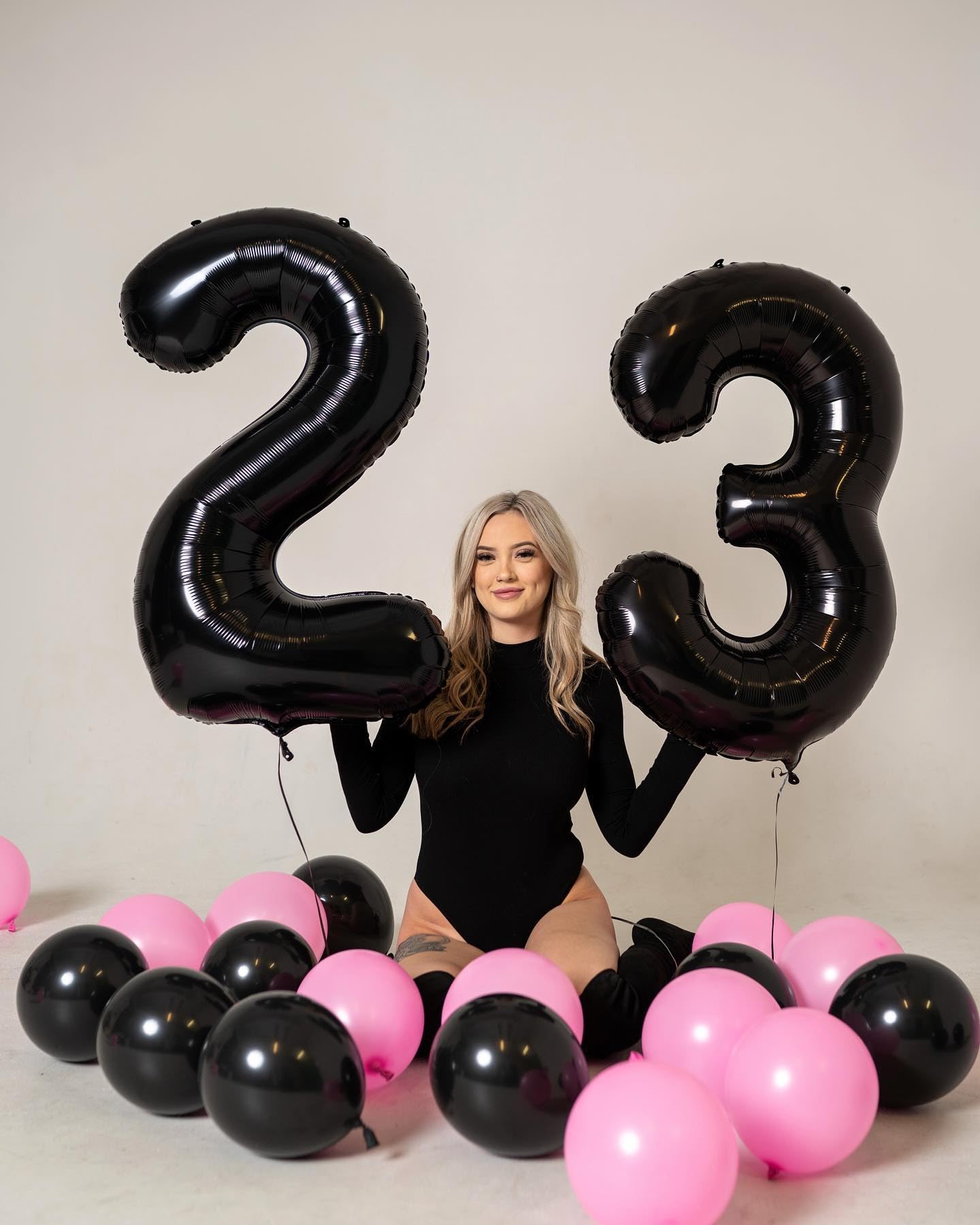 - Q: What size are the black number 13 balloons? A: The black number 13 balloons are 40 inches in size, making them a noticeable and striking decoration for any birthday celebration or anniversary event.