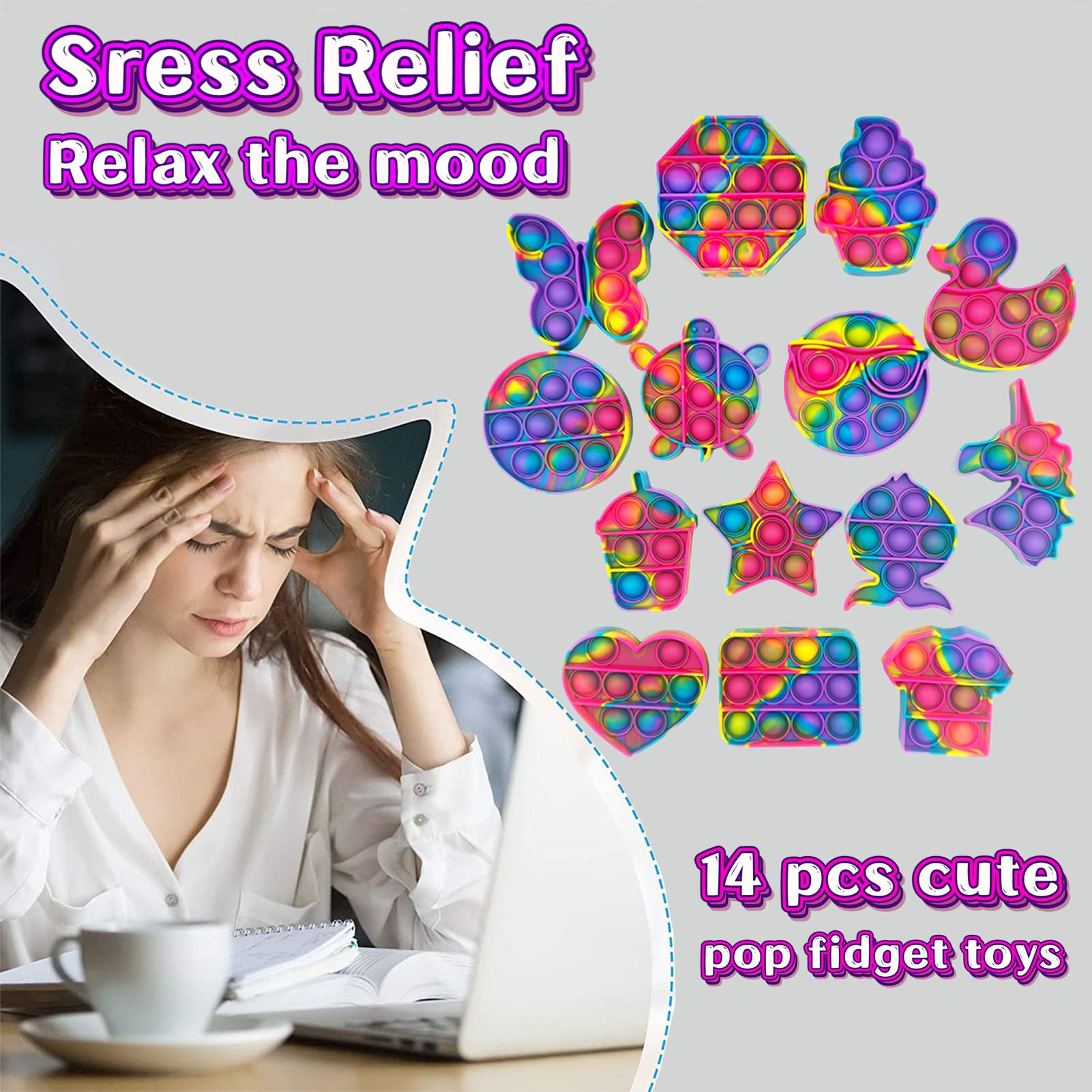 14 Pack Pop Fidget Sensory Toys Party Favors For Kids 4-8 8-12 Year Boys Girls Mini Fidget Toy Bulk Bubbles Popper For Valentine