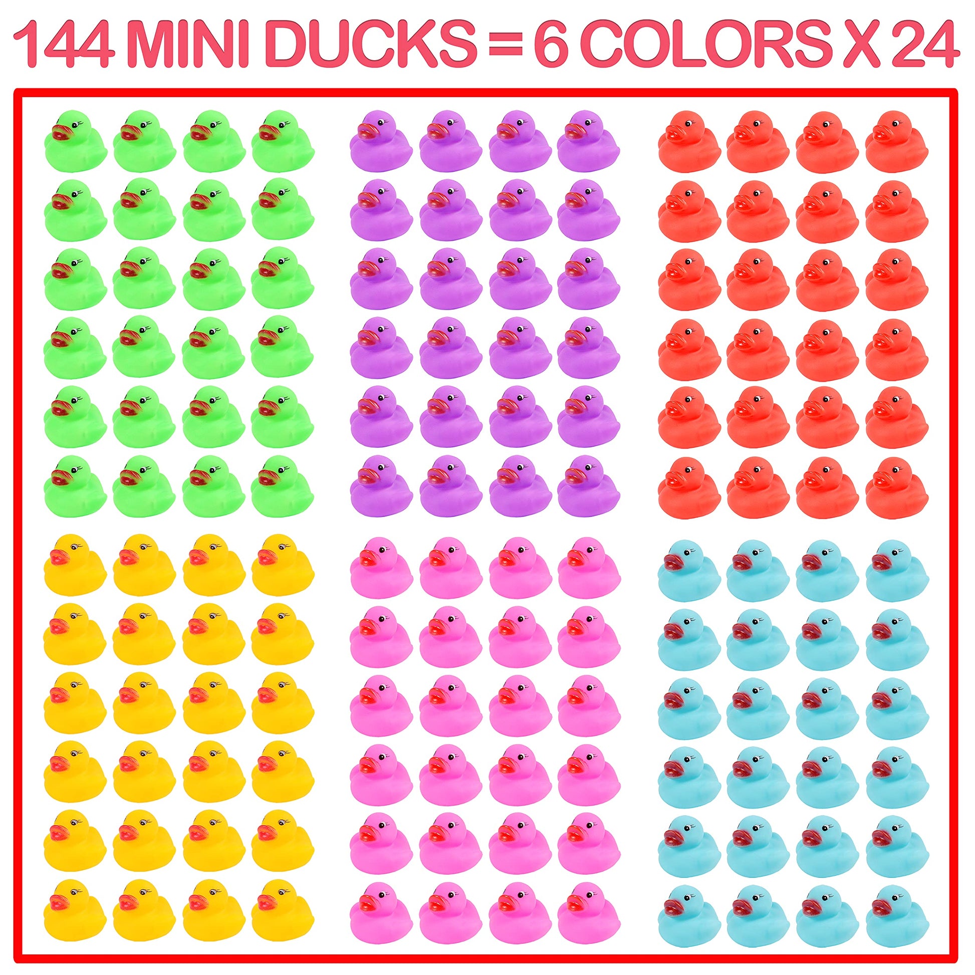 144-Pack Mini Rubber Ducks Set, Mini Colorful Rubber Duckies Bath Toy For Child,Float & Squeak Tiny Ducks Pool Toy Set For Kids Party Favors,Birthday Party Supplies,Prize Rewards