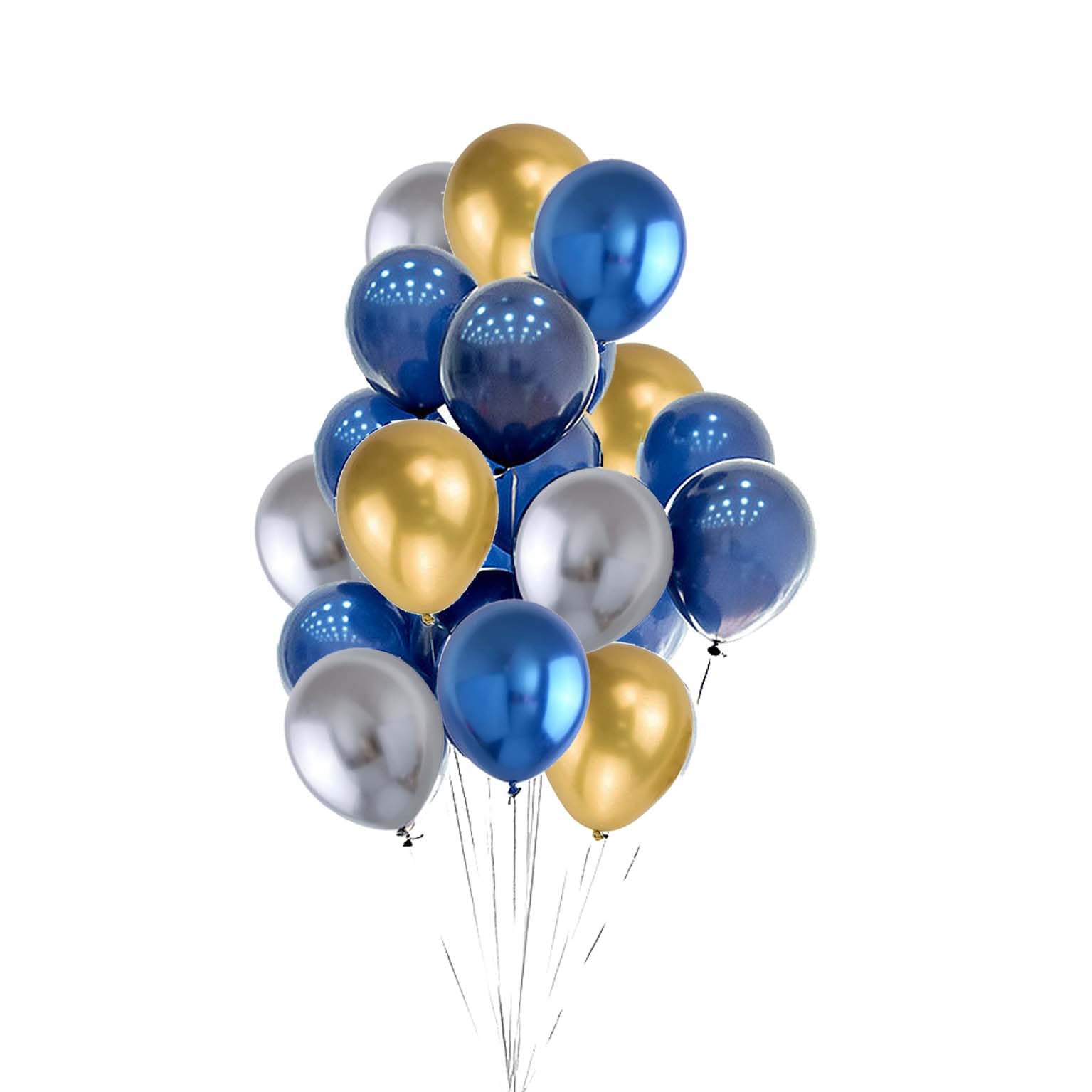 Package Included: 1 * Blue 'Happy Birthday' Letter Banner, 1* Jumbo Number 14 Foil Balloons, 20 Latex Party Balloons In 4 Colors(5* Metallic Silver, 5* Metallic Blue, 5*Metallic Navy Blue, 5* Metallic Gold ), 1* 10M Ribbon. Total 23Packs In One Package.
