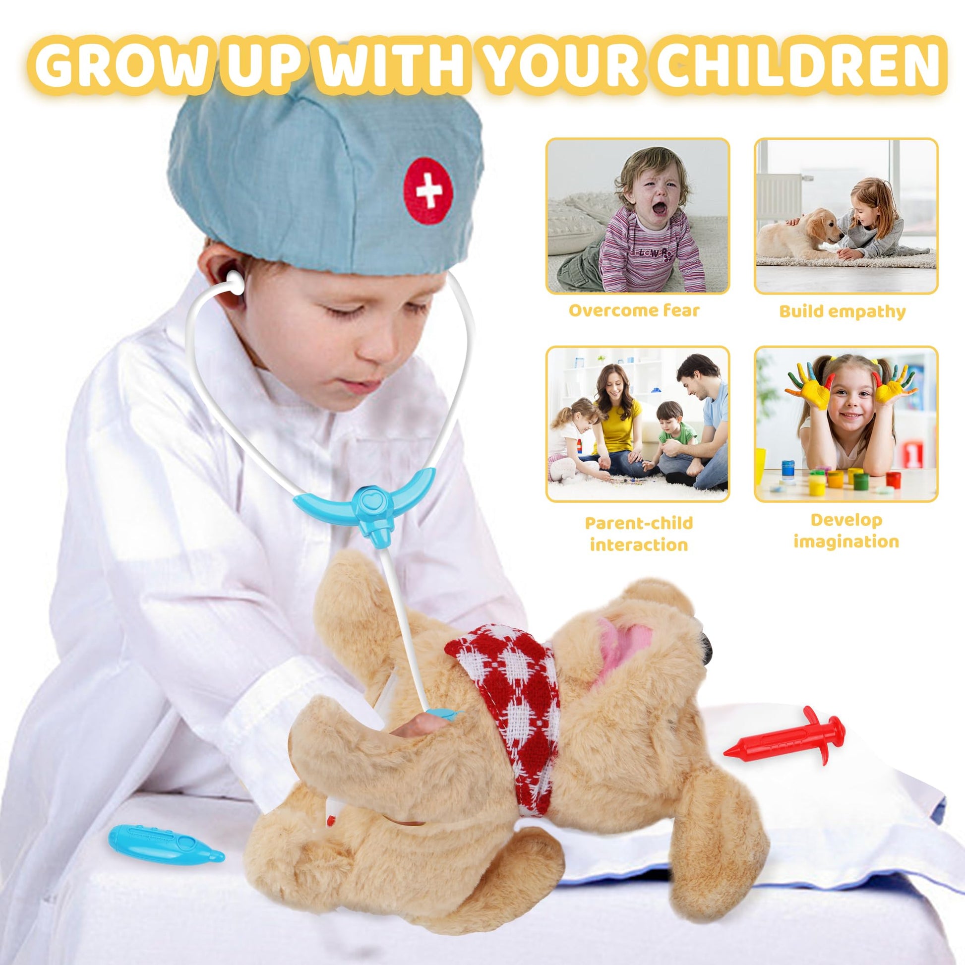With Kindenwinn 15Pcs Dog Toys For Kids, Your Child Will Enjoy Endless Hours Of Fun While Learning Valuable Skills And Developing Their Imagination. Its The Perfect Combination Of Play And Education, Designed To Create Memorable Experiences And Foster Growth. This Set Is Ideal For Toys Girls Love And Makes An Excellent Addition To Any Collection Of Dog Toys For Kids. Rich Accessories: Includes An Electric Toy Dog, Dog Bowl, Bone, Dog Carrier, Grooming Products, And More. Interactive Fun: The Walking Dog Toy For Kids Can Walk, Bark, Wag Its Tail, And Nod Its Head, Mimicking Real Dog Behavior. Portable And Durable: Features A Portable Pet Carrier And Is Made From High-Quality, Non-Toxic Materials With Smooth Edges. Educational And Imaginative Play: Encourages Pet Care Understanding, Imaginative Play, And Development Of Hands-On Skills. Role Play For Confidence Building: Helps Reduce Fear Of Medical Visits And Builds Confidence Through Doctor And Veterinarian Role Play. Perfect Gift: Ideal For Birthdays, Christmas, Childrens Day, And More, With Excellent After-Sales Service.