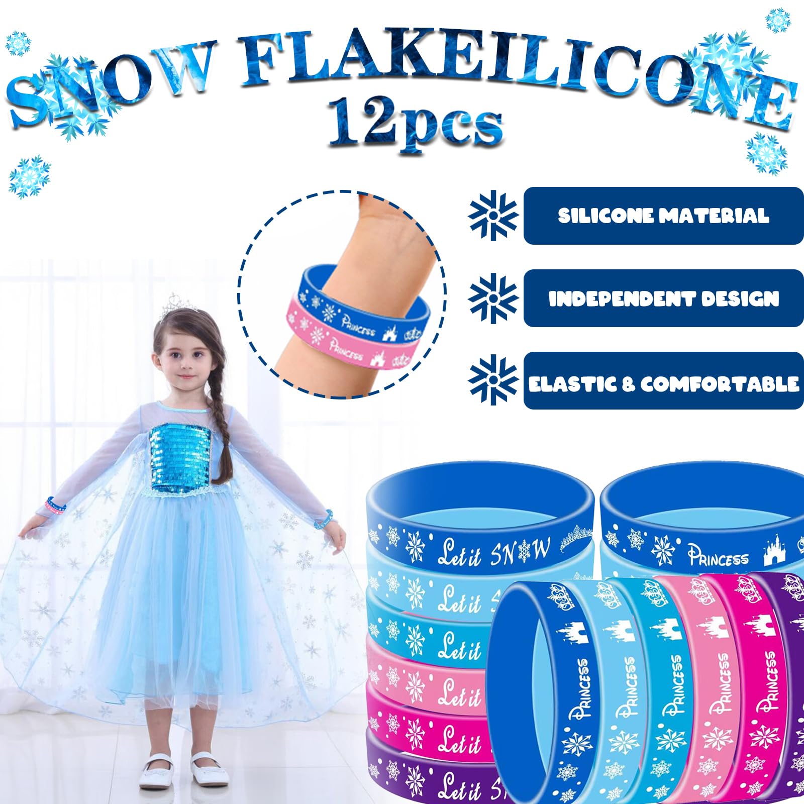 - Q: What items are included in the 110Pcs Snowflake Birthday Party Favors set? A: The set includes 12 silicone bracelets, 12 snowflake love necklaces, 12 stampers with different patterns, 12 love rings, 2 diamond stickers, 50 cookie bags, and 50 different patterns of snowflake stickers.