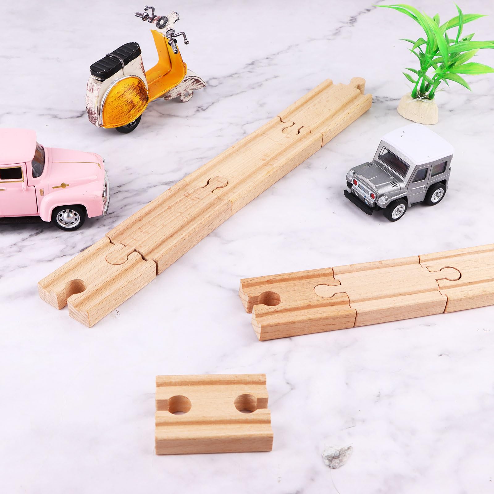 View compare16 Pcs Straight Wooden Tracks Expansion Wood Train Track Connectors and Adapters Male Male Female Female Train Track Accessories