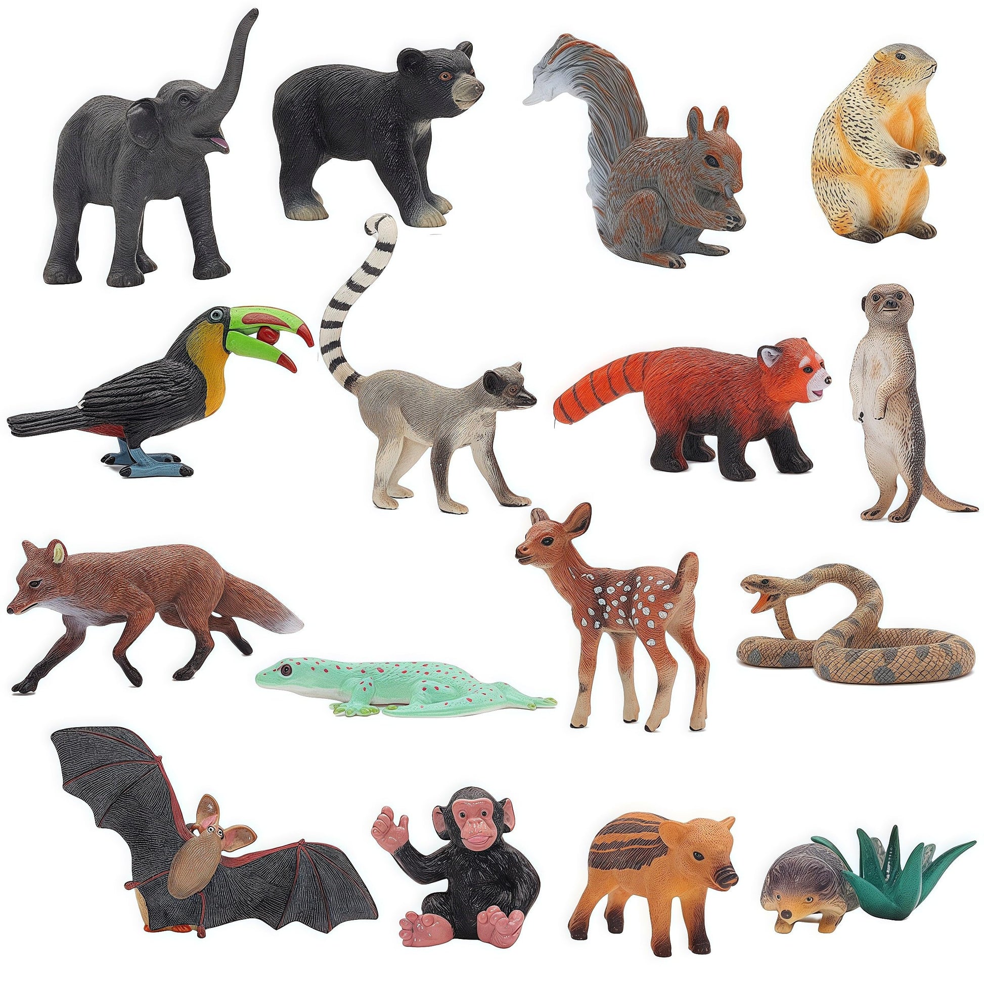 16PCS Forest Animals Baby Figures, Woodland Creatures Figurines, Miniature Toys Cake Toppers Cupcake Toppers Birthday Gift for Kids