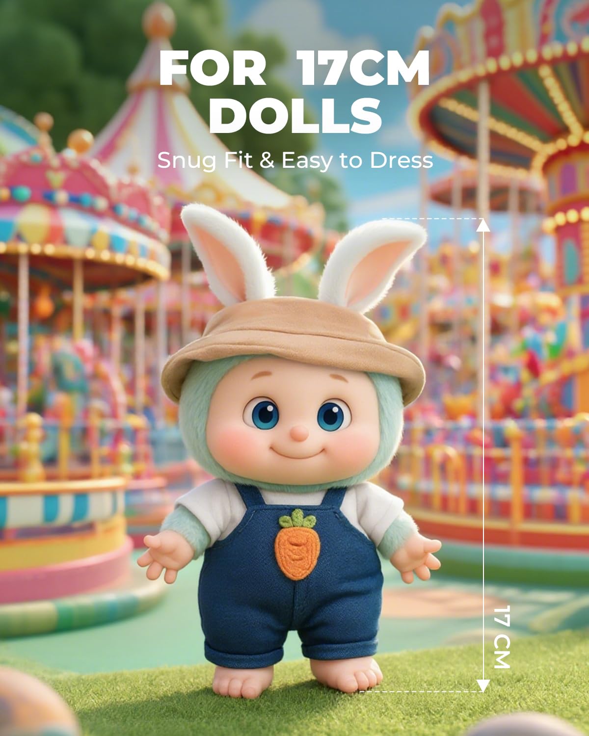 17cm Doll Clothes Casual Style Outfit for 6.7 Inches Dolls Khaki Hat + Denim Overalls Adorable Clothing & Doll Accessories for Dress Up