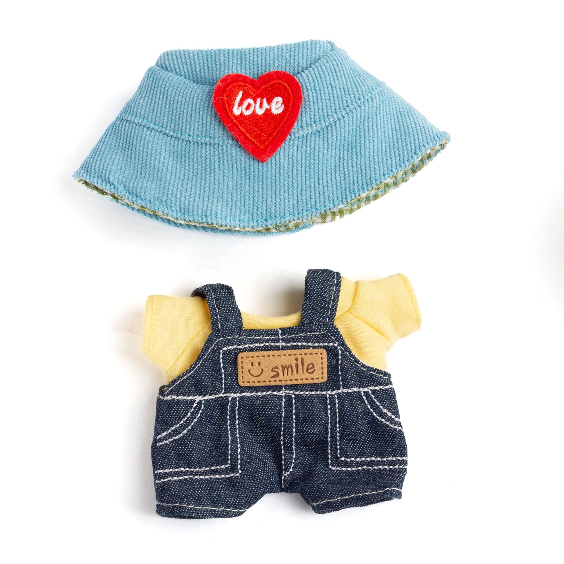 17cm Doll Clothes - Kawaii Chic Style Set for 17cm Dolls Cute Doll Outfit with Accessories - Denim Romper + Yellow T-Shirt + Heart Shaped Blue Hat (NO Doll)