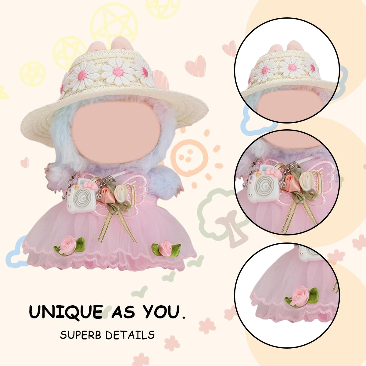 17cm Doll Clothes Set enhanced Jeans & Knitted Sweater Outfit for 17cm 15cm Dolls Cute Dress Up Fashion No Doll Included (Flower 17cm/15cm)