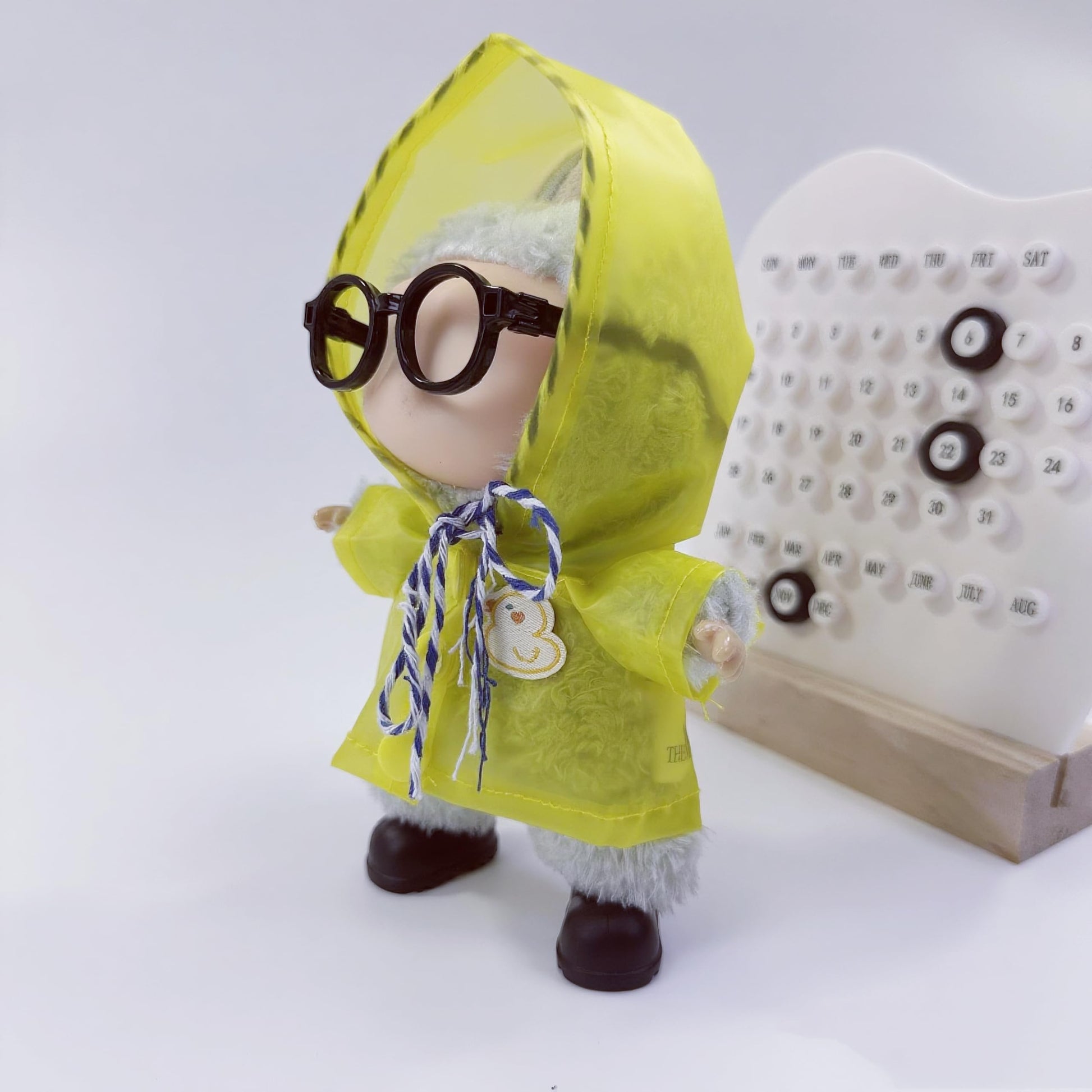 17cm Doll Clothes Set Stylish Yellow Raincoat Doll Outfits with Black Shoes Black Glasses (No Dolls)