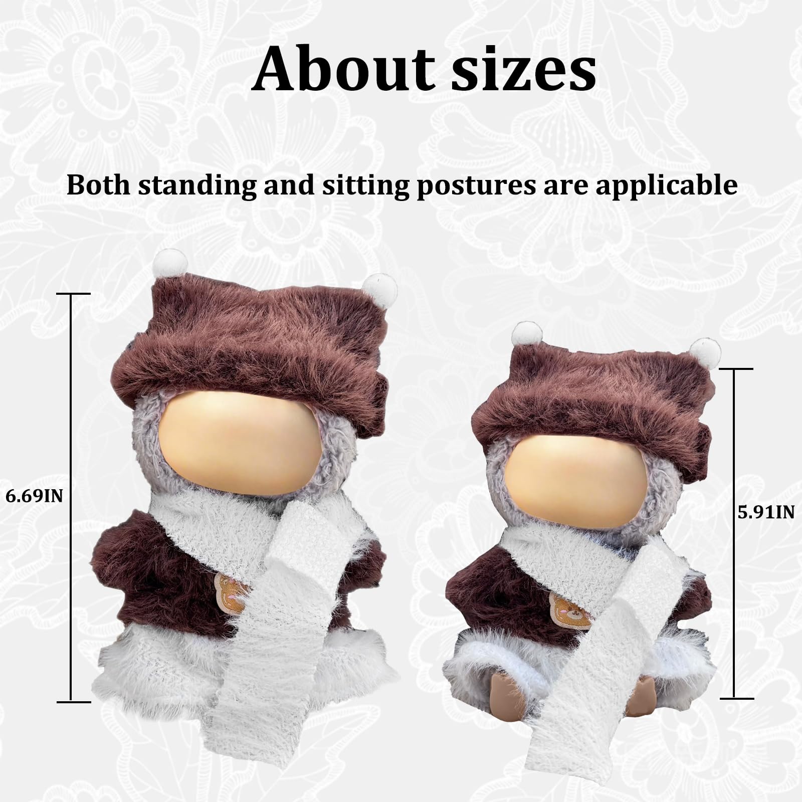 17cm Doll Clothes Set(NO Doll) - Cute Knit Sweater & Handcrafted Crochet Skirt enhanced Fashion Dresses Soft Stretch Fabric Costume Accessories Brown Winter Hat Scarf Suit
