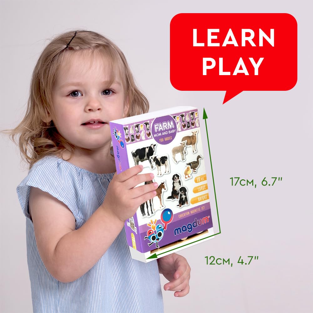 18 Fridge Magnets For Toddlers Magdum - Mom And Baby Kids Magnets For Fridge - Toddler Magnets For Refrigerator - Magnetic Animals - Fridge Magnets For Kids - Animal Magnets - Toddler Fridge Magnets