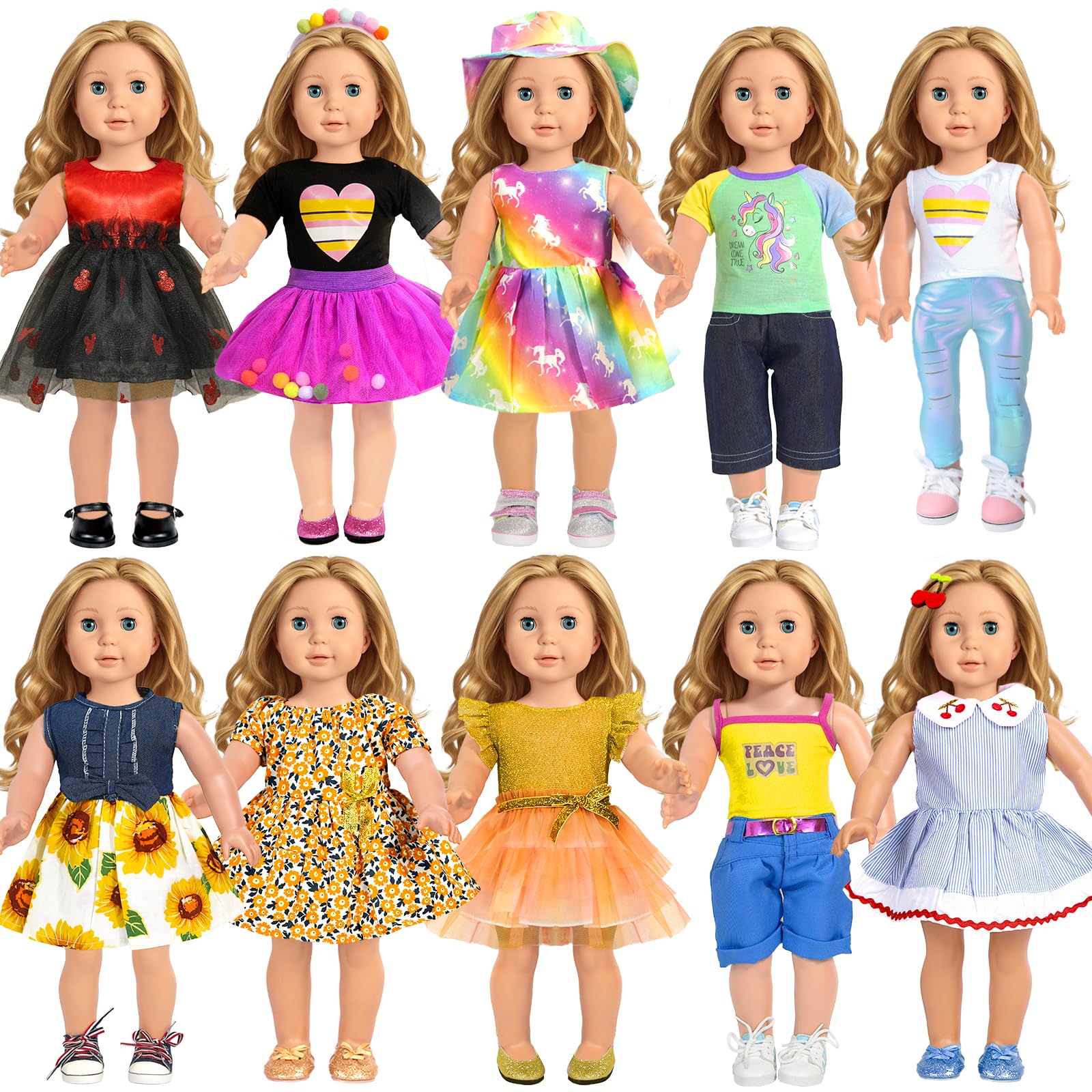 18 Inch Doll Clothes Accessories, Artst 18Pcs Doll Clothes Outfit Dress For 18 Inch, Xmas Gift For Girls(10 Set)