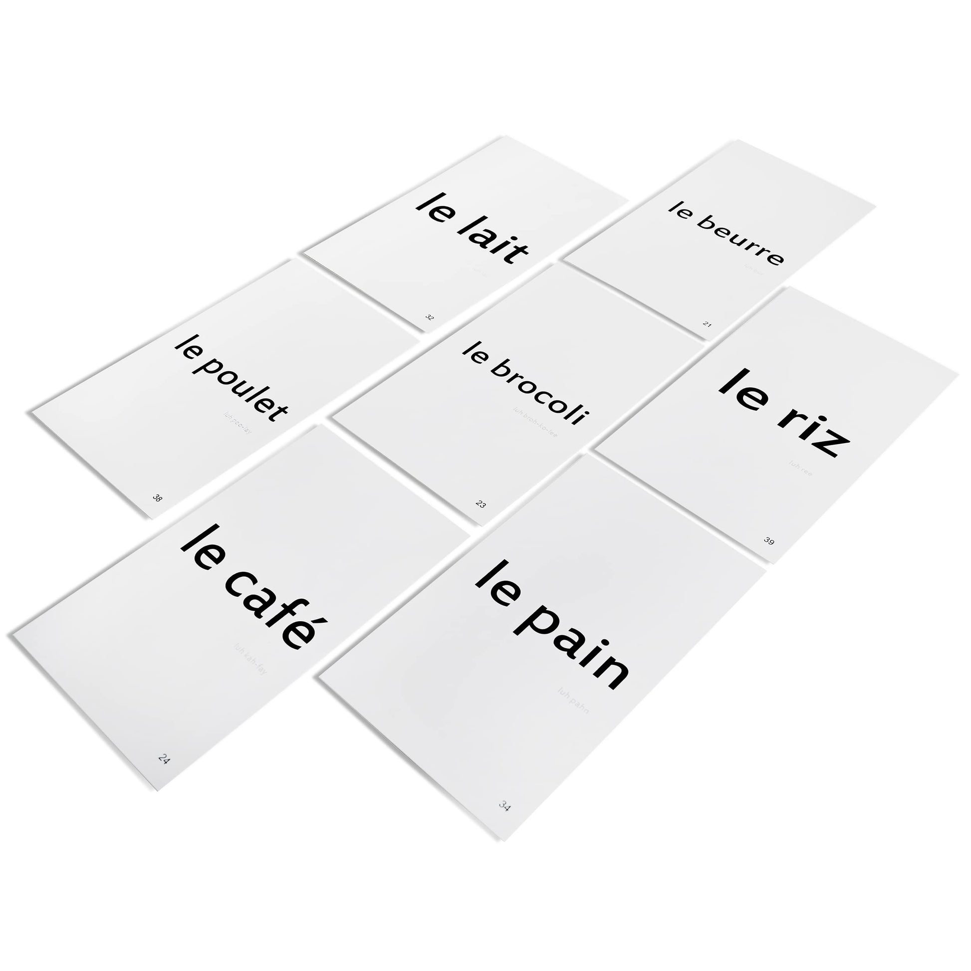 - Q: How do the flash cards help with learning French? A: The flash cards feature original artwork on the front and French text on the back, encouraging learners to associate the images with the French words without English translations, which enhances vocabulary retention.