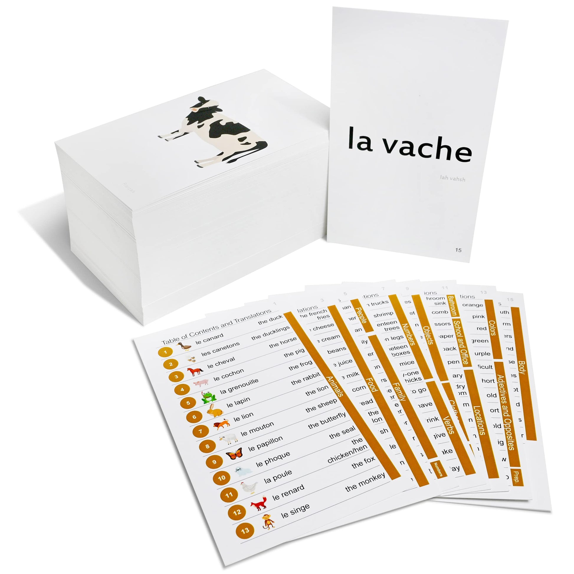 - Q: Is there any support for English speakers learning French with these cards? A: Yes, in addition to the main set, there are eight additional cards with English-French translations for easy reference, helping English speakers to quickly look up meanings.