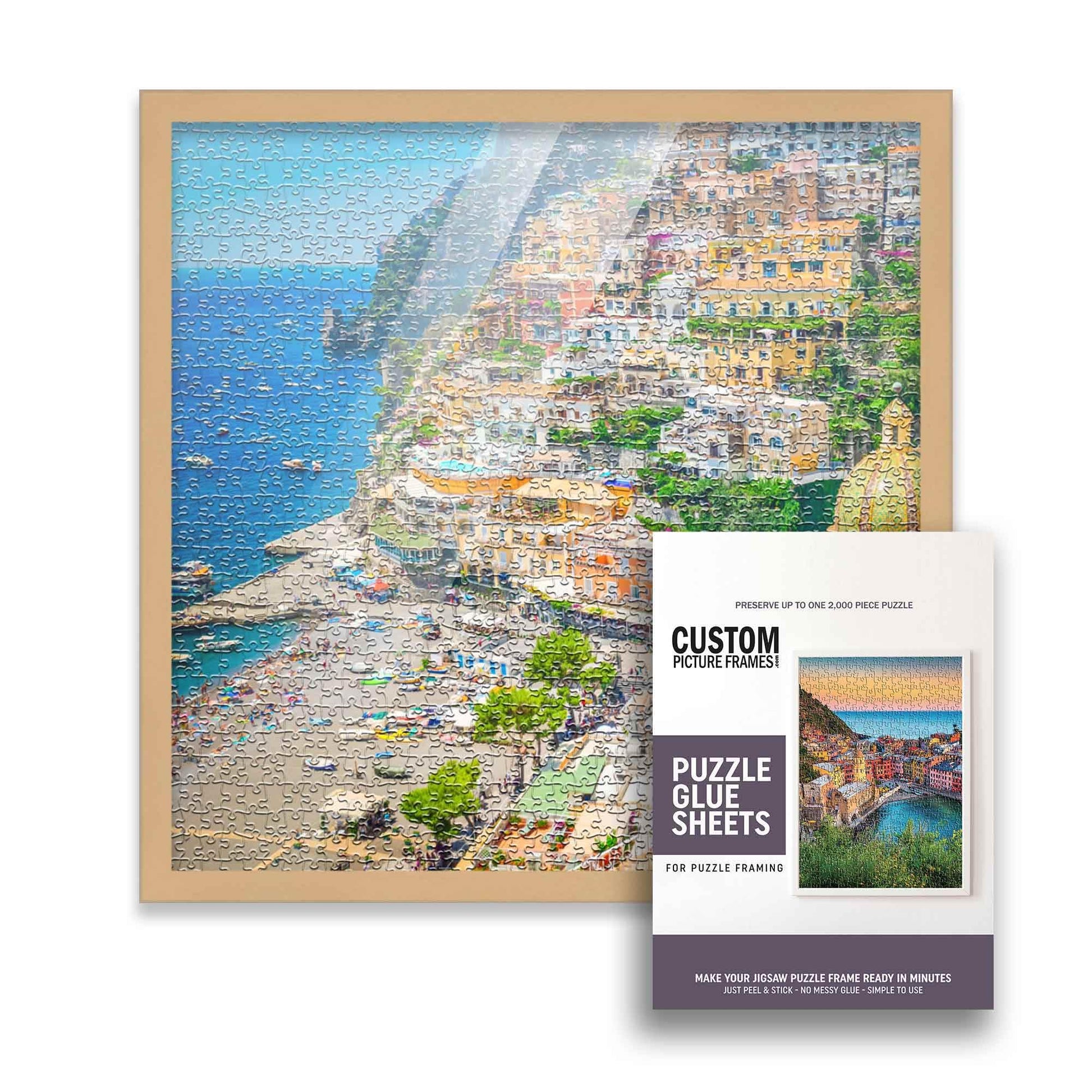 • Q: How do I preserve my puzzle using the glue sheets? A: The included peel and stick puzzle glue sheets allow you to easily adhere the pieces of your puzzle together, ensuring that your completed work of art remains intact and ready for framing.