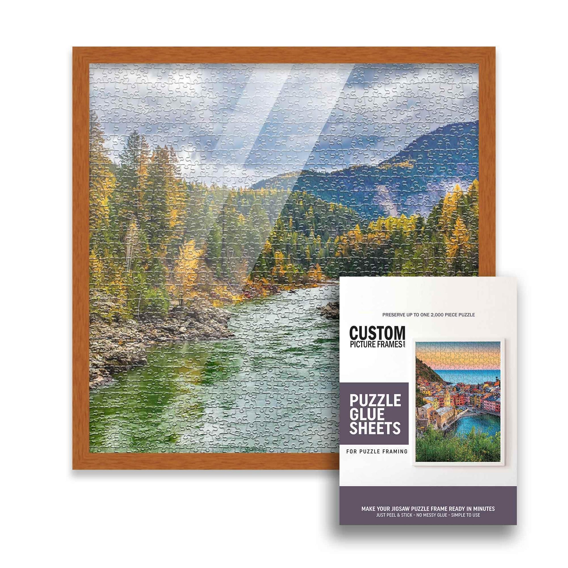 19X19 Puzzle Frame Kit With Glue Sheets | Light Brown Traditional Picture Frame | Real Wood With Uv Resistant Acrylic Front | Ma