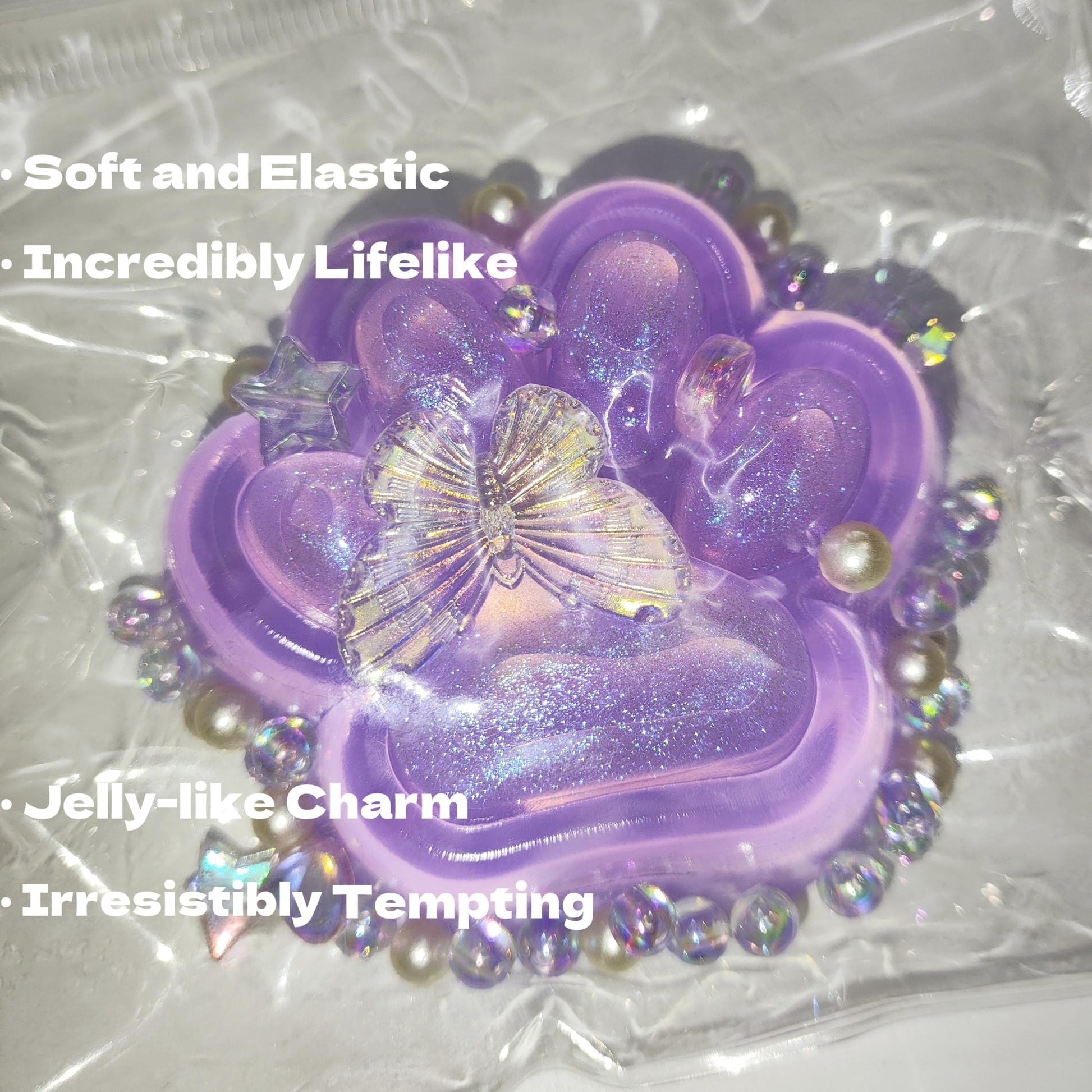 2.76 Inch Squeeze Toys Cat Paw Handmade Squeeze, Purple Glitter Transparent Squeeze Paw, Cute Soft Squeeze For Stress Relief, Fi