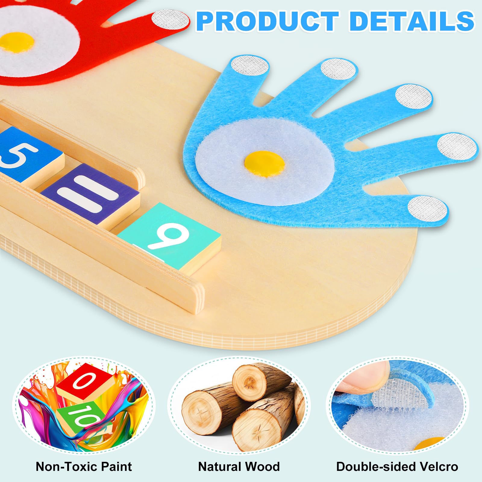 - Q: What materials are used in the Number Word Blocks? A: The Number Word Blocks are made from wood. The blocks are painted with non-toxic water-based paint, ensuring safety for toddlers.