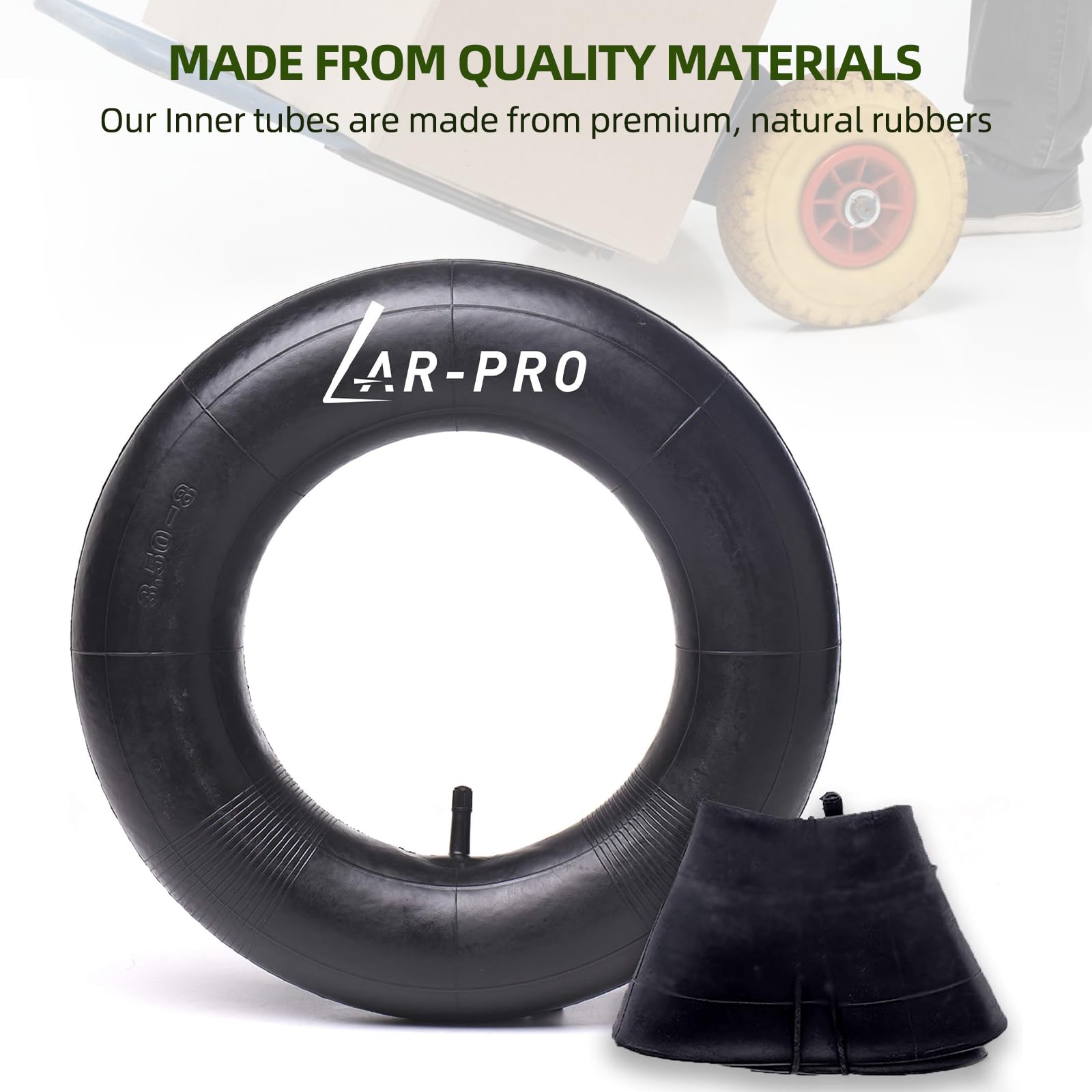 THE PERFECT REPLACEMENTS: AR-PRO offers the perfect replacement inner tube for 3.50-8'' (8'' rim size also fit 4.00-8 3.50-8 and 3.25-8 tire) of hand trucks lawn mowers yard trailers wheelbarrows enhanced QUALITY: Our inner tubes are made of enhanced heavy duty rubber yet for less cost from the OEM GUARANTEED PROPER FIT: Our inner tubes are approved by the mechanic to ensure the quality meets or exceeds the OEM ones EASY INSTALLATION: It takes less than 5 minutes to replace all tires