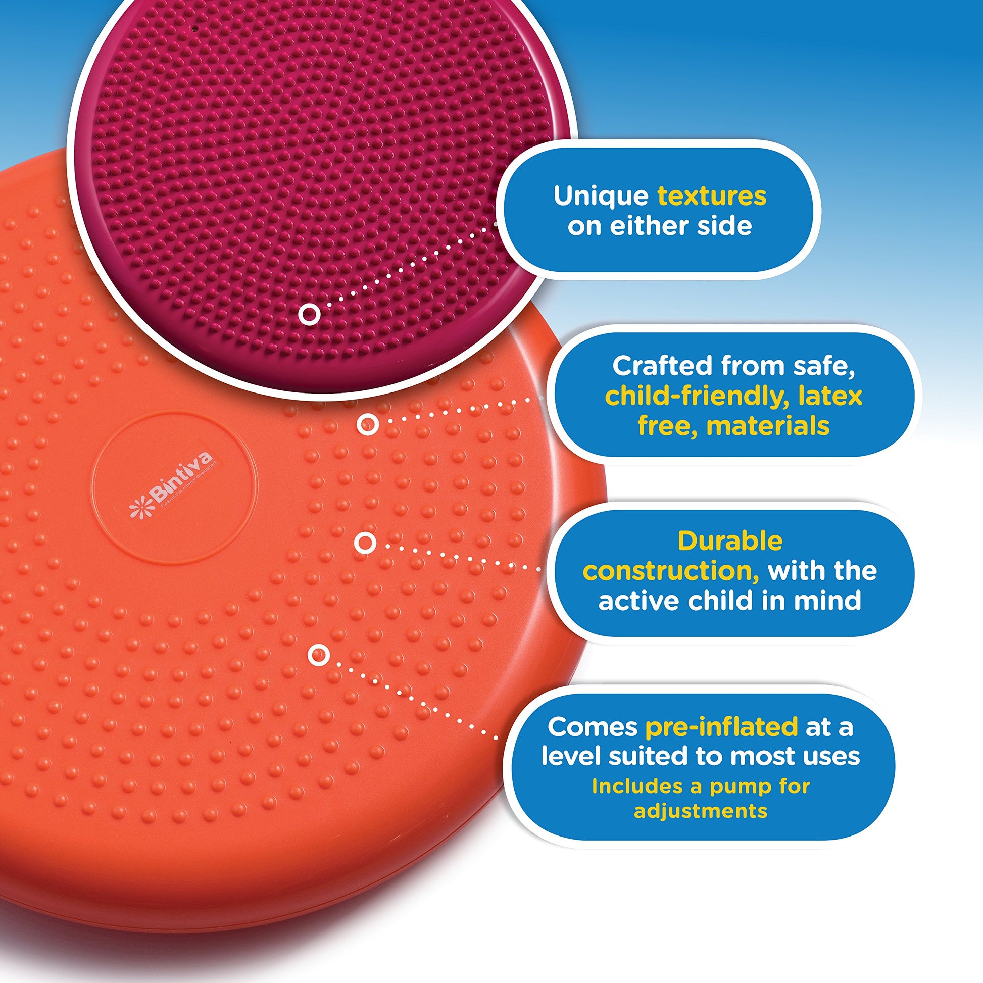 The Bintiva Balance Disc / Wobble Cushion, Is An Important Strengthening Tool To Be Used By Adults And Children. The Simple Act Of Sitting On The Disc Activates Core Abdominal And Trunk Muscles. Flexor And Extensor Muscles Work In Tandem To Keep Your Balance On The Disc While Continuously Strengthening And Toning. Through These Small, Continuous Motions That You Are Making, Deep Core Muscles Are Constantly Stimulated And Enhanced. It Is Very Important To Maintain An Upright Posture While Seated On The Disc. It Is However, Not Meant For Sitting Only. You Can Actually Stand, Kneel, And Do All Sorts Of Exercises On It, Thereby Increasing The Benefits Of Those Exercise Routines.