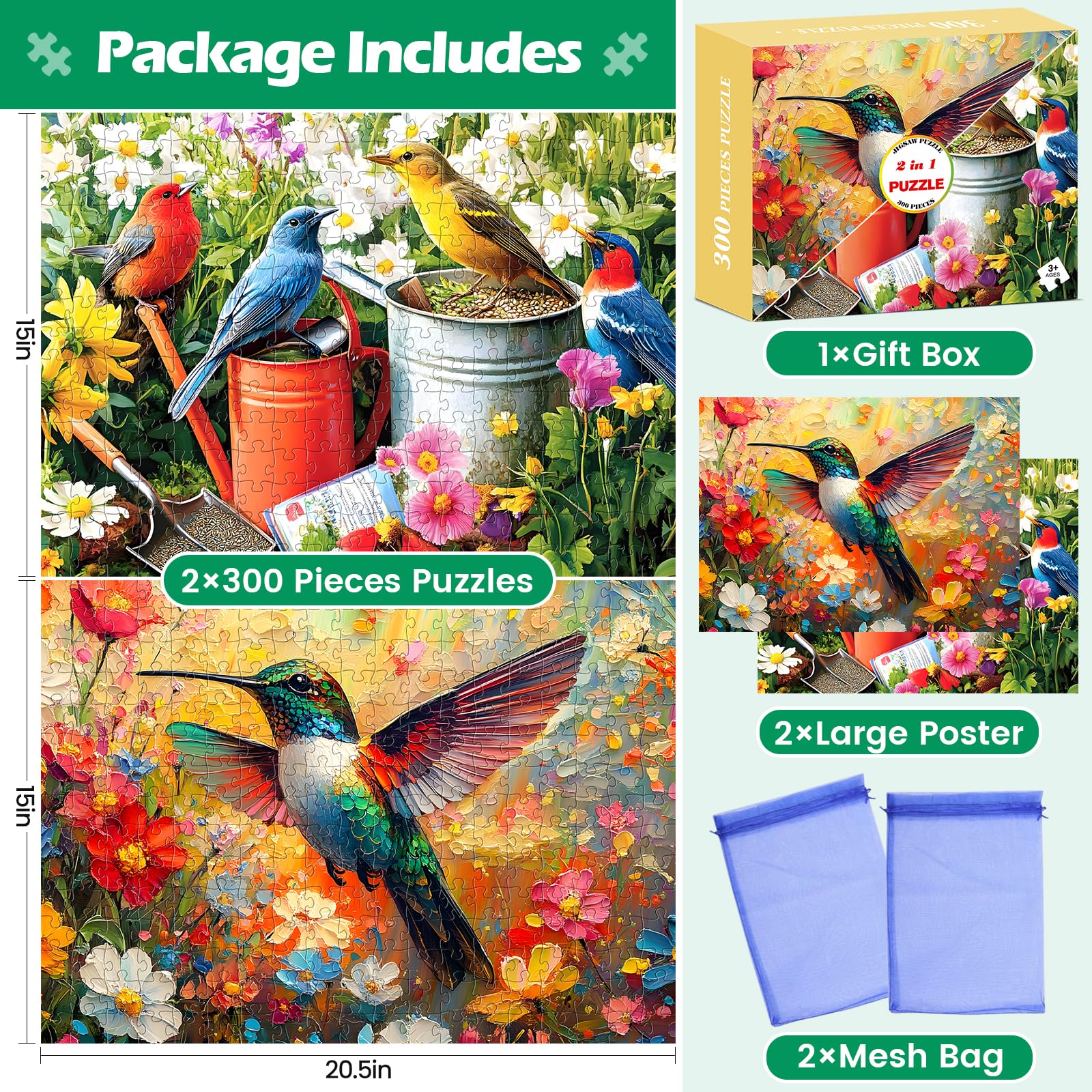 2 Pack Jigsaw Puzzles 300 Pieces for mature-themeds Hummingbird Puzzle for mature-themeds Kids Seniors Bird 300 Pieces Puzzle No Dust Pieces Fit Together Perfectly Challenging Puzzles Family Game Gift Toy