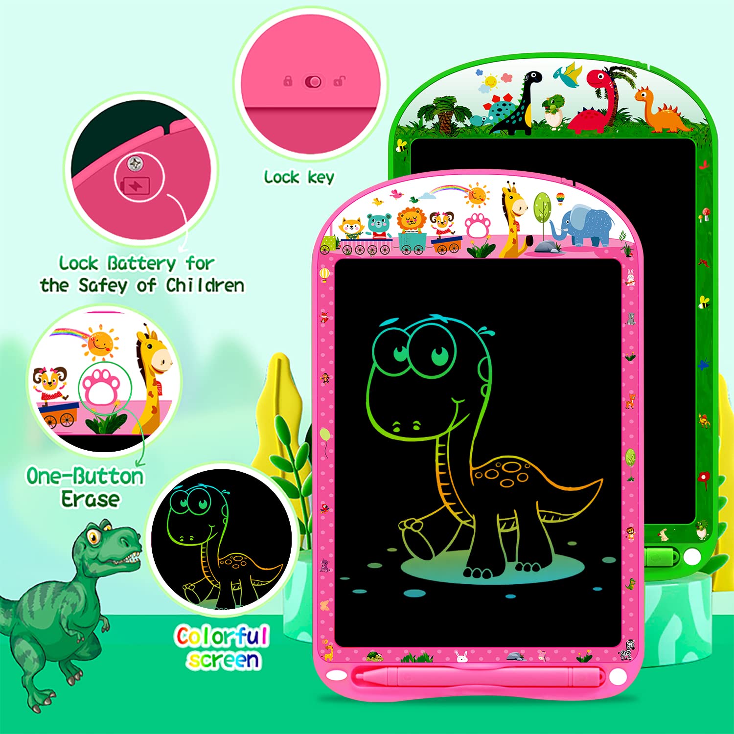 2 Pack Lcd Writing Tablet For Kids,10 Inch Colorful Doodle Board Drawing Pad For Kids Sensory Toys Educational Erasable Sketch Pad Toys For 3-8 Year Old Girls Boys Learning Pink+Green