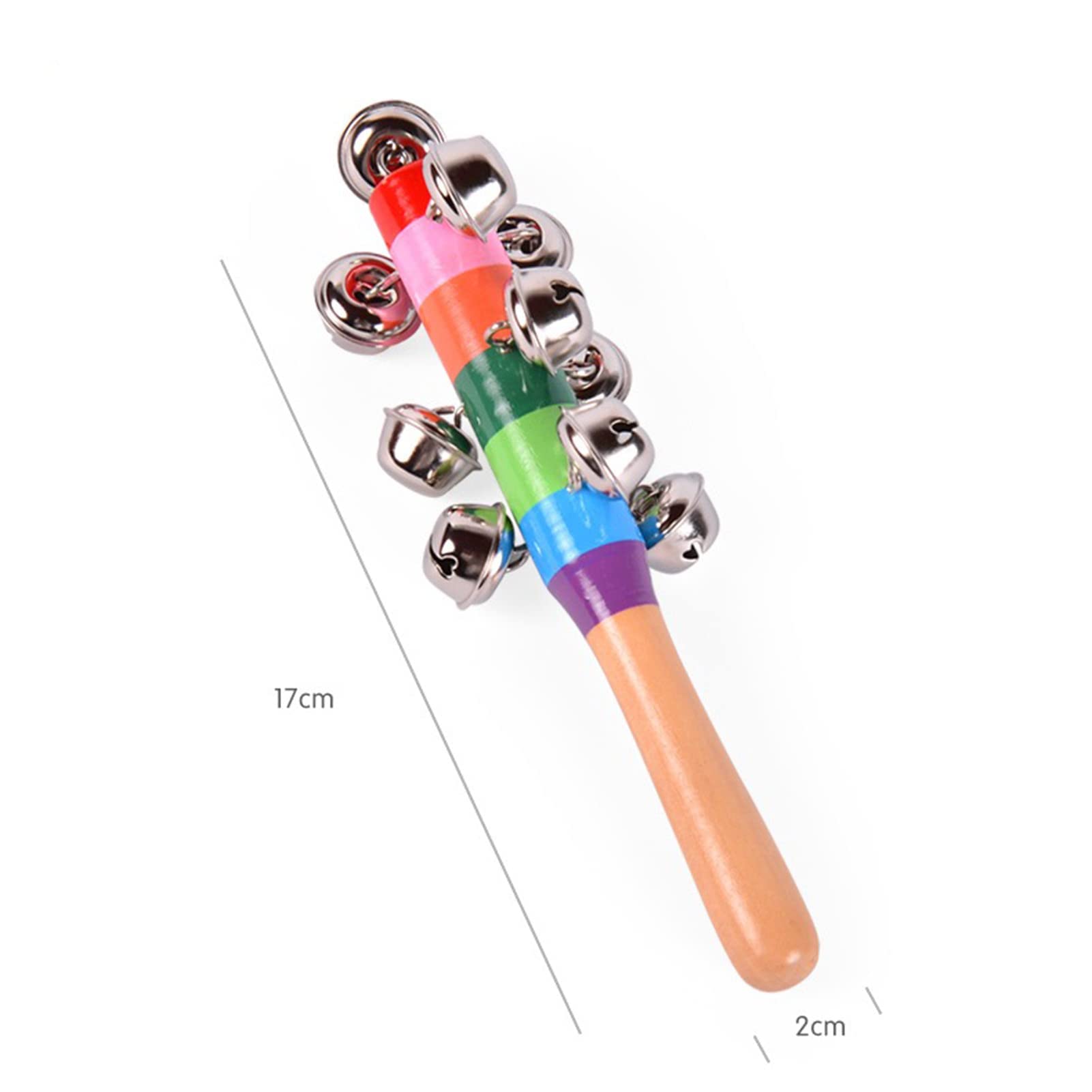 2 Pack Vivid Color Rainbow Handle Wooden Bells Jingle Stick Shaker Rattle 10 Jingle Bells Baby Kids Children Musical Toys
