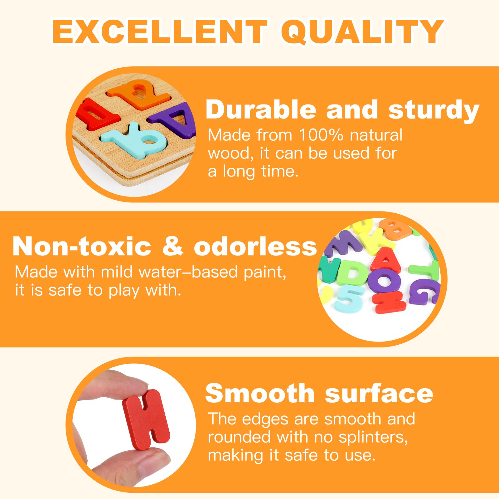 2 Pack Wooden Puzzles Toddlers Alphabet Number Puzzles ABC Learning Toys for Kids Ages 3-5 Preschool Learning Activities Gift Set for Boys & Girls