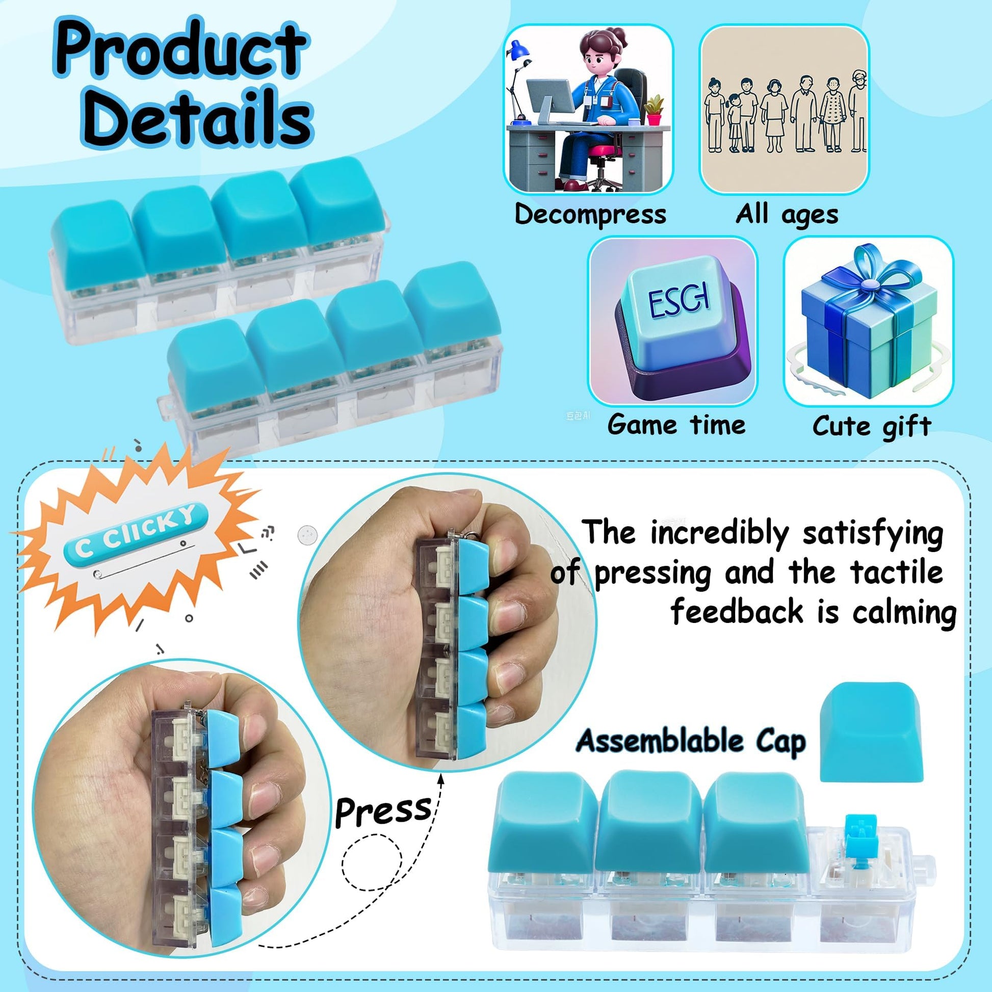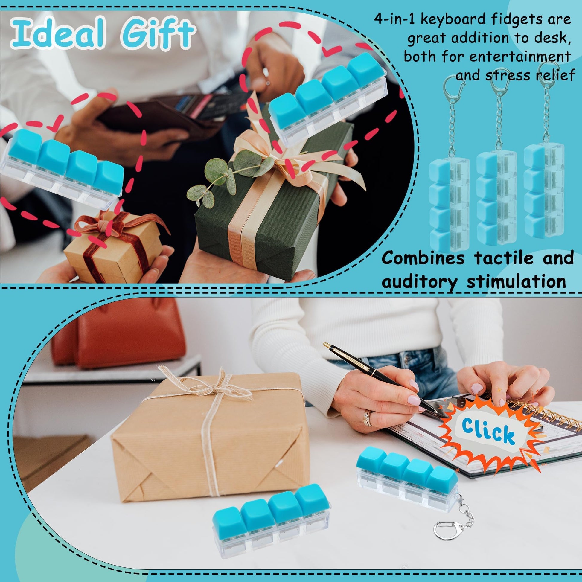 2 Pcs Keyboard Fidget Toy Keyboard Fidget Keychain 4-in-1 Keyboard Decompression Button Finger Clicker Toys Button Stress Relief Fidget Gifts for mature-themed to Relief Stress (Blue)