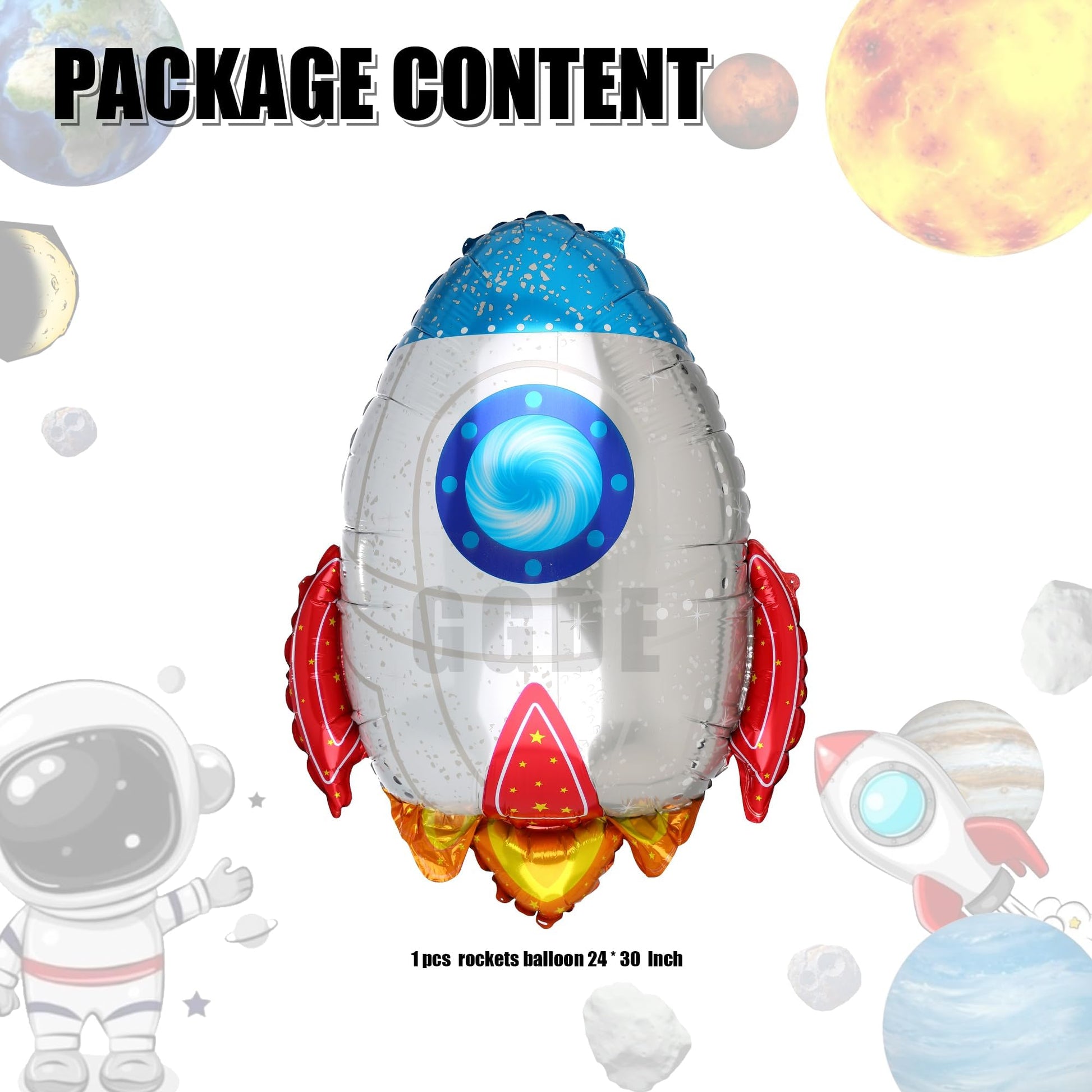 • Q: What are the dimensions of the Rocket Shaped Mylar Foil Balloon? A: The Rocket Shaped Mylar Foil Balloon measures 24 inches by 30 inches, making it a large and eye-catching decoration for any space-themed birthday party.