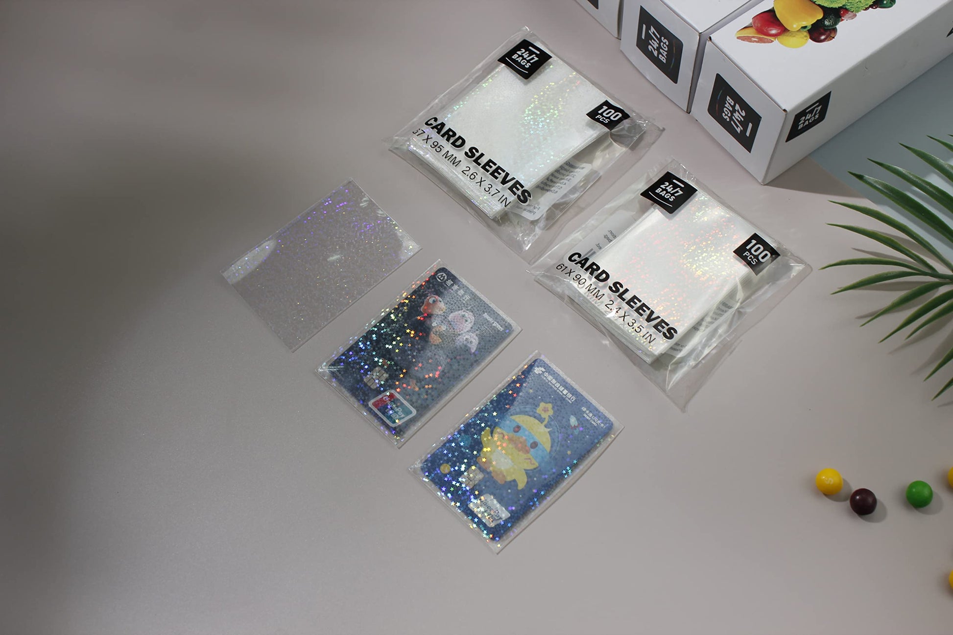 200 Card Protective Sleeves, 2.4 X3.5 , Clear Front/Holographic Back, Pvc-Free, Size Fits Most Trading Cards, Collect Your C