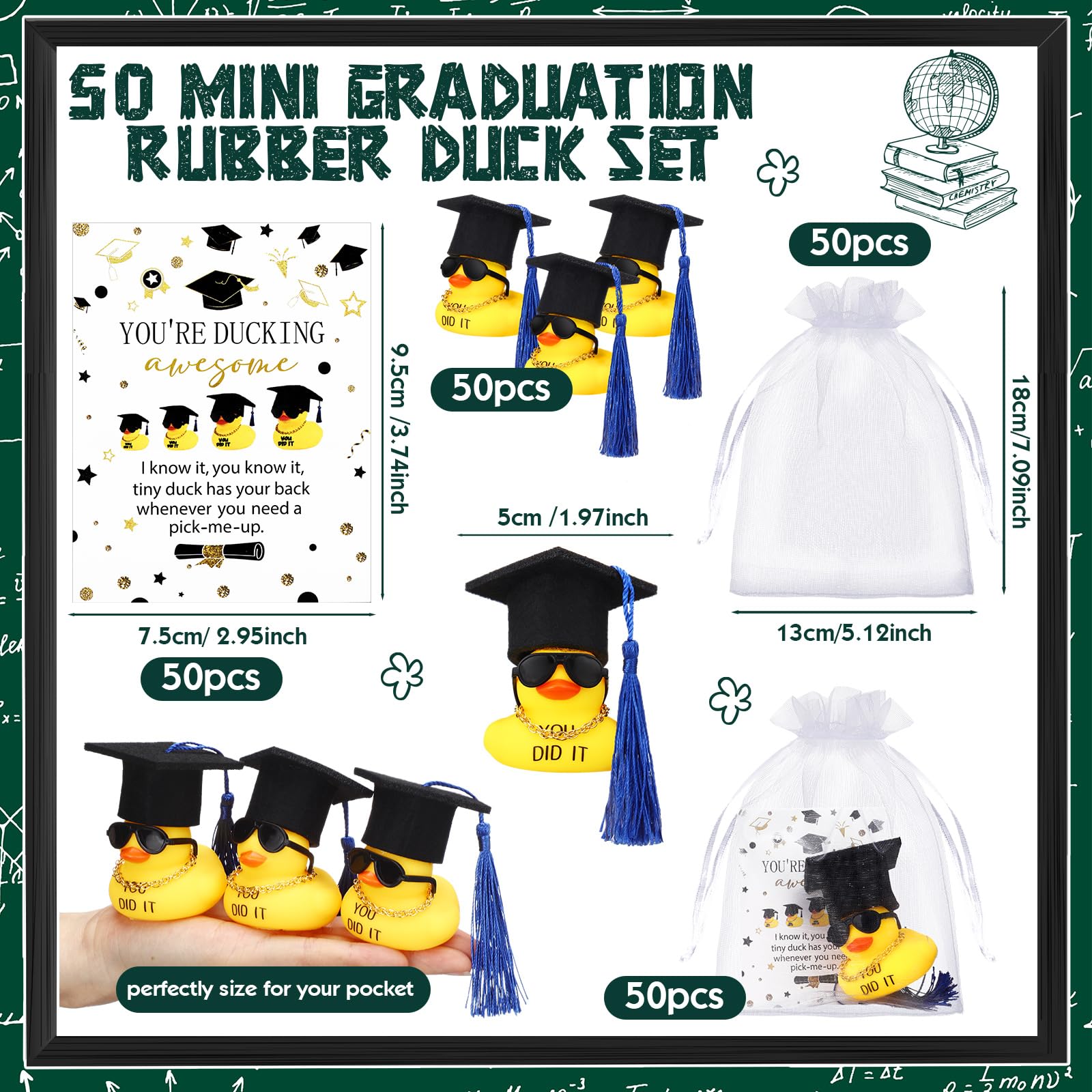 200 Pcs 2025 Graduation Party Favors Includes 2 Inch 50 Pcs Graduation Rubber Ducks With Necklace Sunglasses For Bath Pool 50 Pc