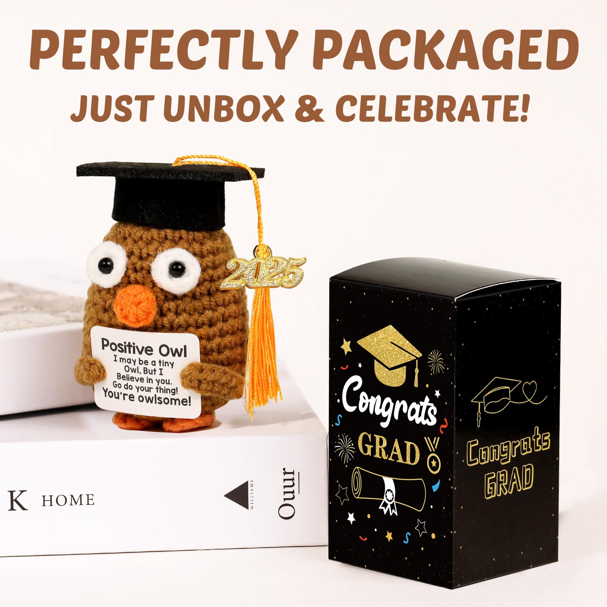 2025 Graduation Gifts, Positive Owl with Cap, Emotional Support Crochet, Cute College & High School Grad Gift for Her Him Friend