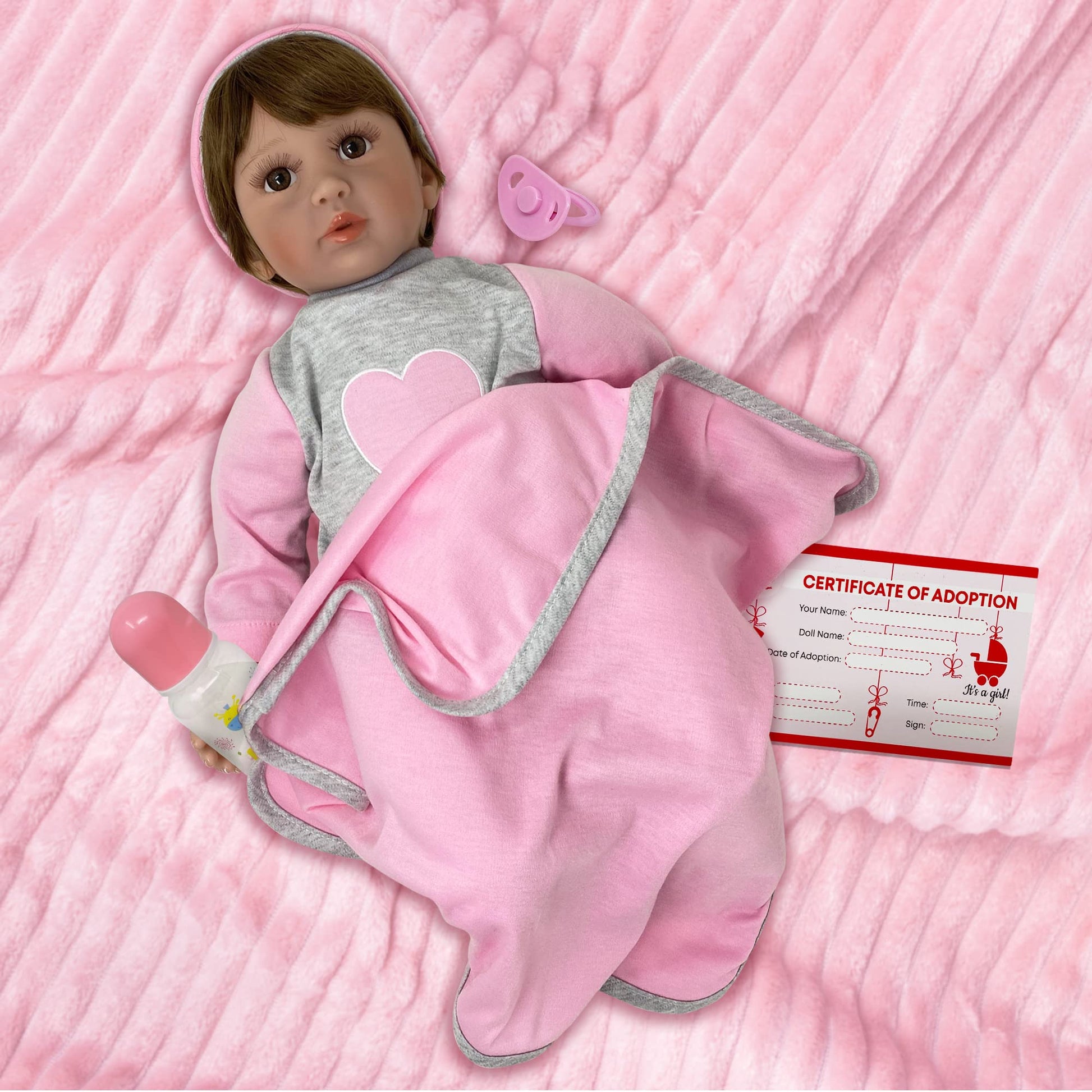 22' Baby Doll | Reborn Realistic Baby Doll That Looks Real | Weighted Soft Newborn Silicone Baby Doll Gift Set With Swaddle Blanket, Pacifier Toy, Play Bottle & Birth Certificate