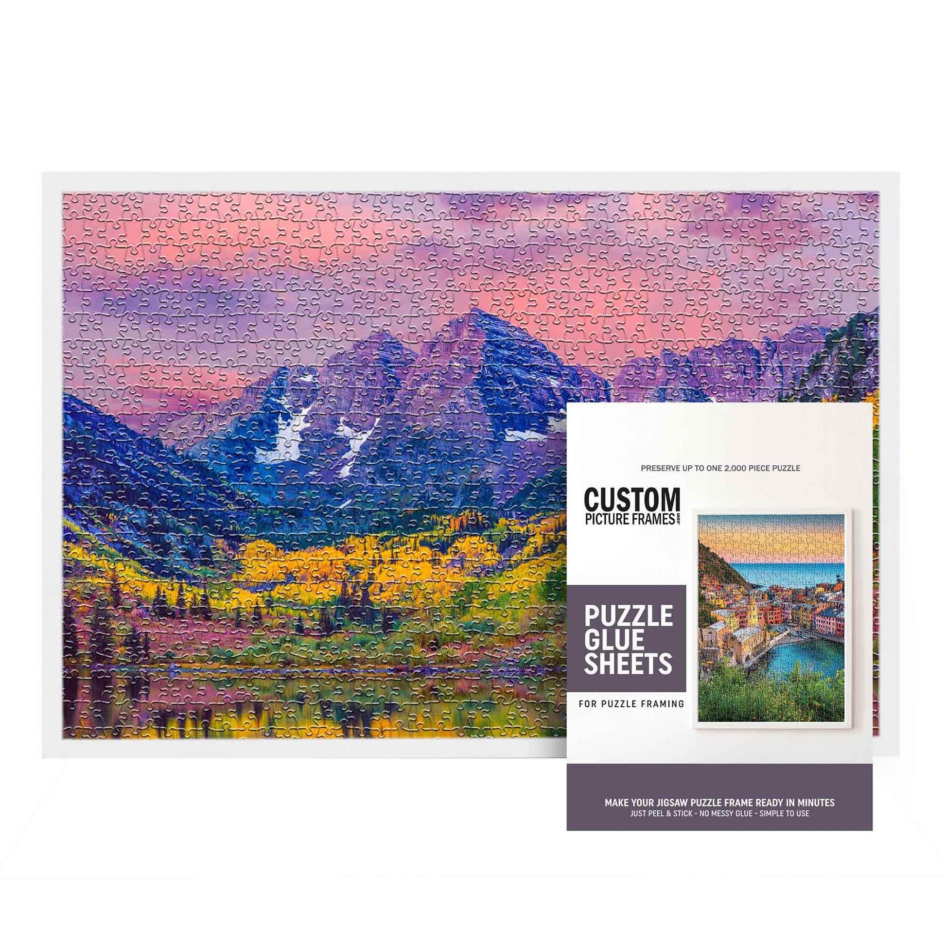- Q: What are the benefits of using the included puzzle glue sheets? A: The peel and stick puzzle glue sheets are easier and cleaner to use than traditional puzzle glue, making it simple to preserve your jigsaw puzzle without mess.