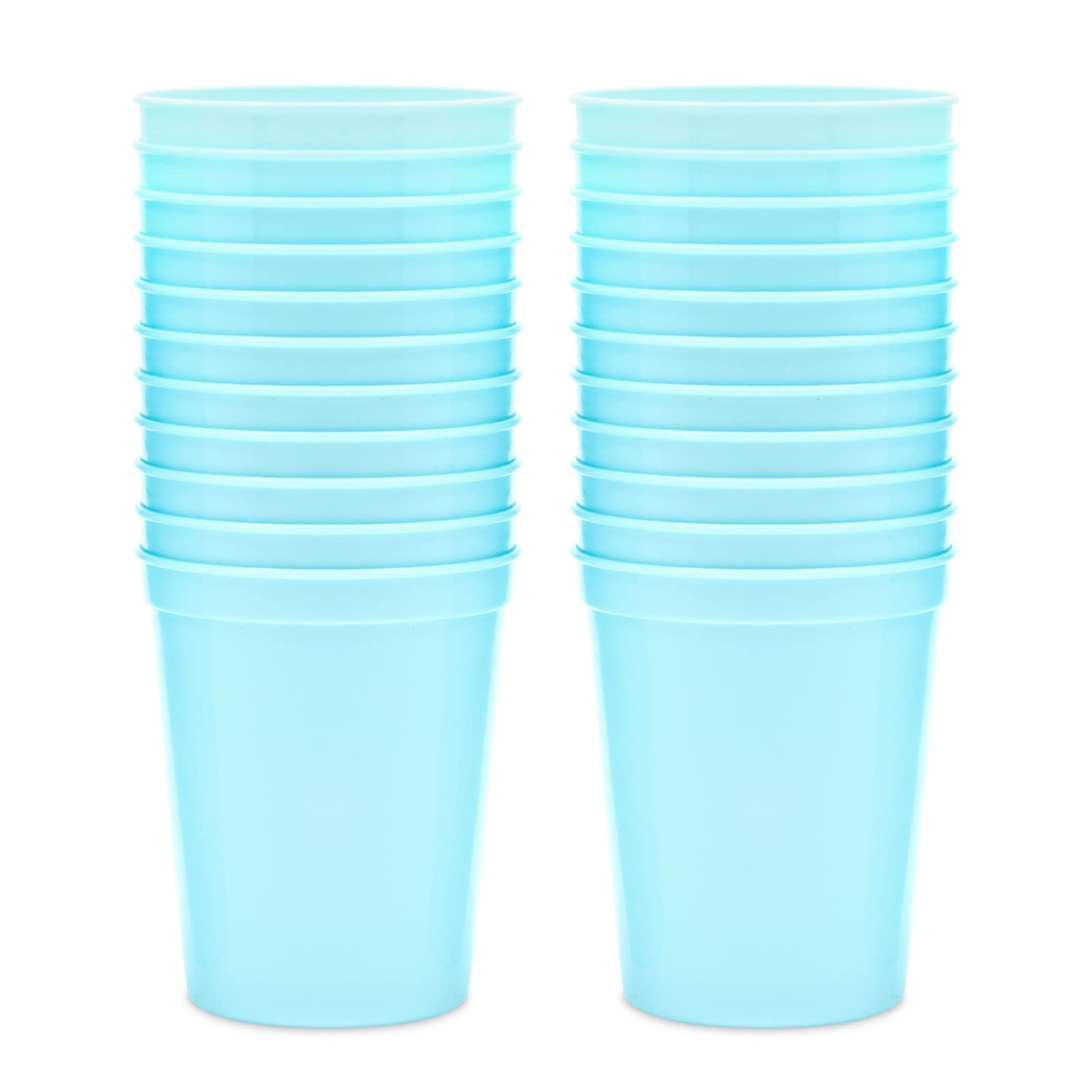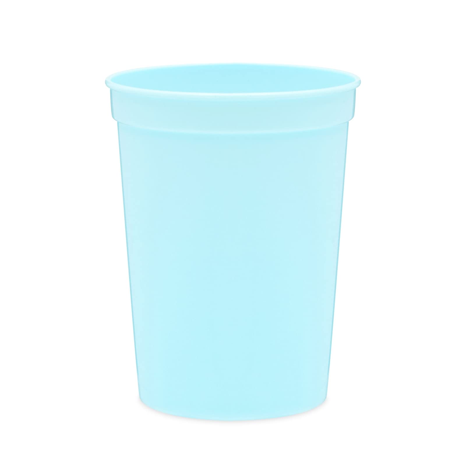 Create a party to remember with this set of 24 plastic stadium cups, Each light blue cup can hold up to 16 ounces of your favorite drink such as soda, water, juice, and even mixed drinks. Use the plastic reusable cups for any upcoming celebration such as birthday parties, bridal showers, baby showers, Halloween costume parties, summer hangouts, pool parties, or for everyday use. The cups feature a blank surface that you can personalize with customized labels or logos to match your party supplies and decorations. The reusable party cups measure 4.5 inches tall that you can wash and stack and store them easily in your kitchen.